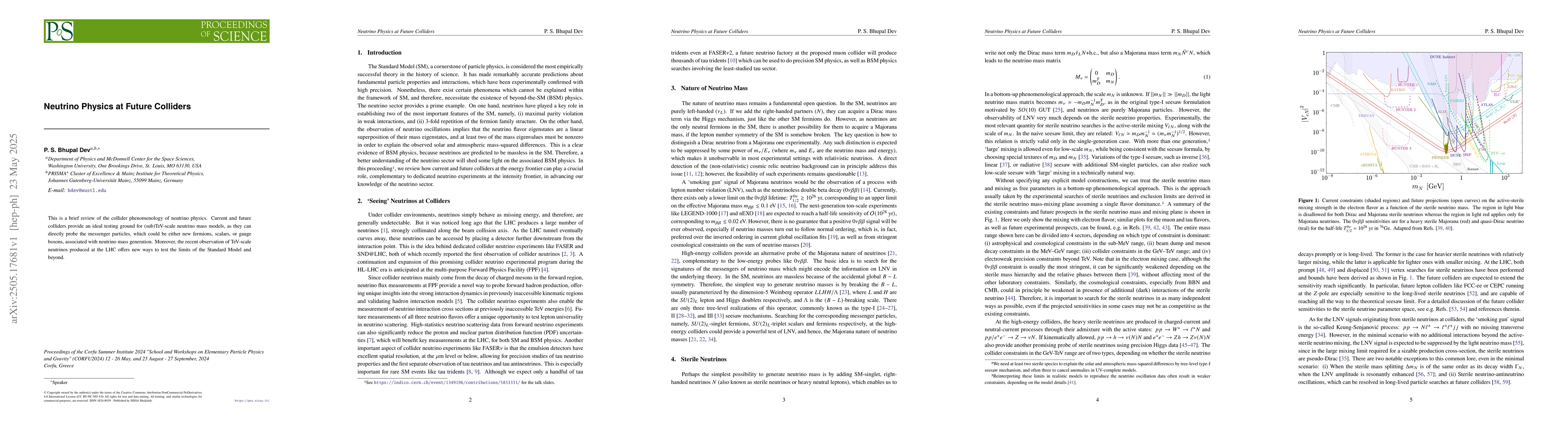 The paper provides a review of collider phenomenology focusing on neutrino physics, discussing how current and future colliders can test (sub)TeV-scale neutrino mass models by probing messenger particles like new fermions, scalars, or gauge bosons associated with neutrino mass generation.