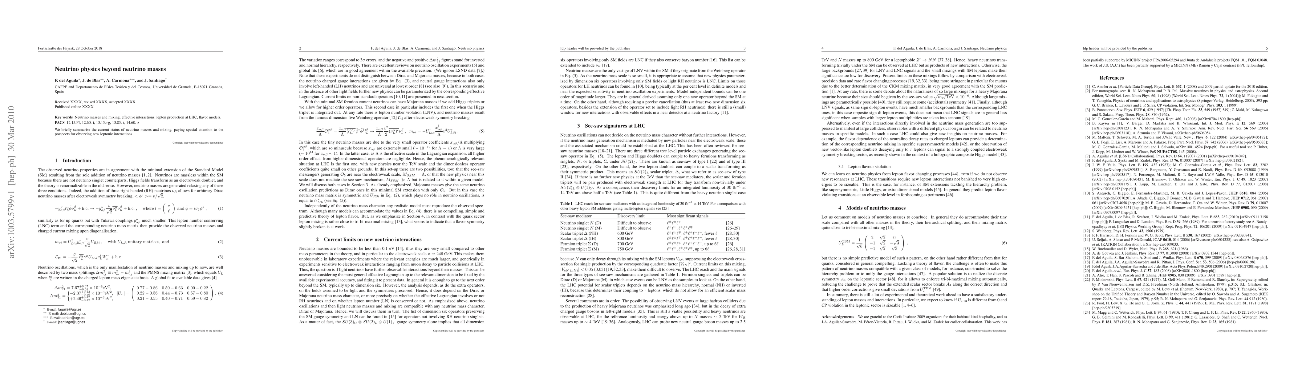 We briefly summarise the current status of neutrino masses and mixing, paying special attention to the prospects for observing new leptonic interactions.