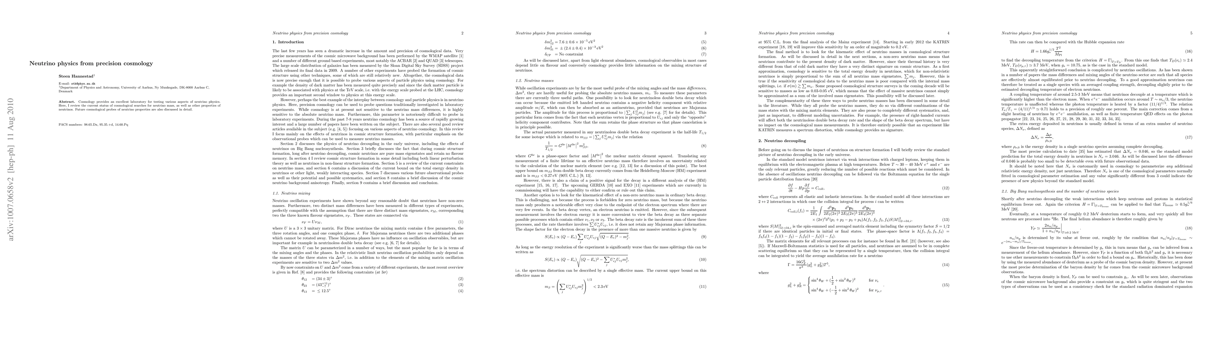 This paper reviews the current state of cosmological investigations into neutrino mass and other properties, highlighting the potential of precision cosmology to test neutrino physics. It also discusses future prospects for these cosmological probes.