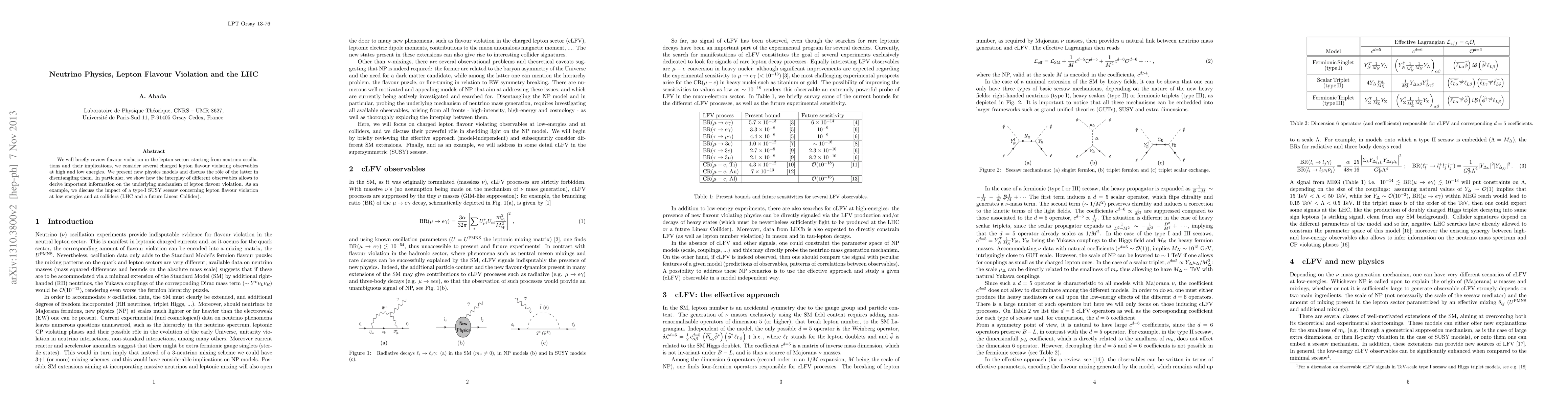This paper reviews neutrino oscillations and explores charged lepton flavour violation observables, proposing new physics models to disentangle these phenomena. It highlights the significance of Type-I SUSY seesaw in lepton flavour violation, especially at low energies and colliders like the LHC.