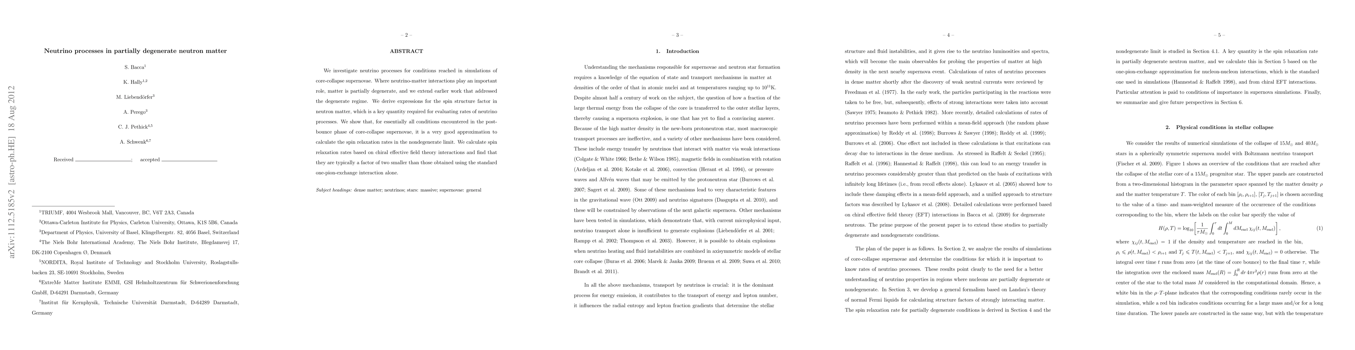 We investigate neutrino processes for conditions reached in simulations of core-collapse supernovae. Where neutrino-matter interactions play an important role, matter is partially degenerate, and we extend earlier work that addressed the degenerate regime. We derive expressions for the spin structure factor in neutron matter, which is a key quantity required for evaluating rates of neutrino processes. We show that, for essentially all conditions encountered in the post-bounce phase of core-collapse supernovae, it is a very good approximation to calculate the spin relaxation rates in the nondegenerate limit. We calculate spin relaxation rates based on chiral effective field theory interactions and find that they are typically a factor of two smaller than those obtained using the standard one-pion-exchange interaction alone.