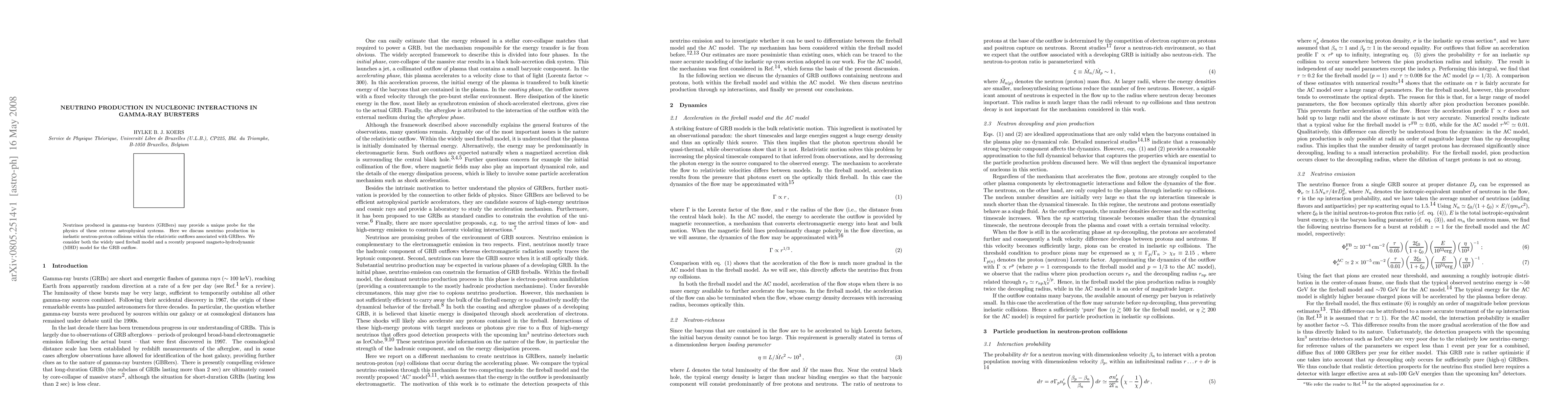 Neutrinos produced in gamma-ray bursters (GRBers) may provide a unique probe for the physics of these extreme astrophysical systems. Here we discuss neutrino production in inelastic neutron-proton collisions within the relativistic outflows associated with GRBers. We consider both the widely used fireball model and a recently proposed magneto-hydrodynamic (MHD) model for the GRB outflow.