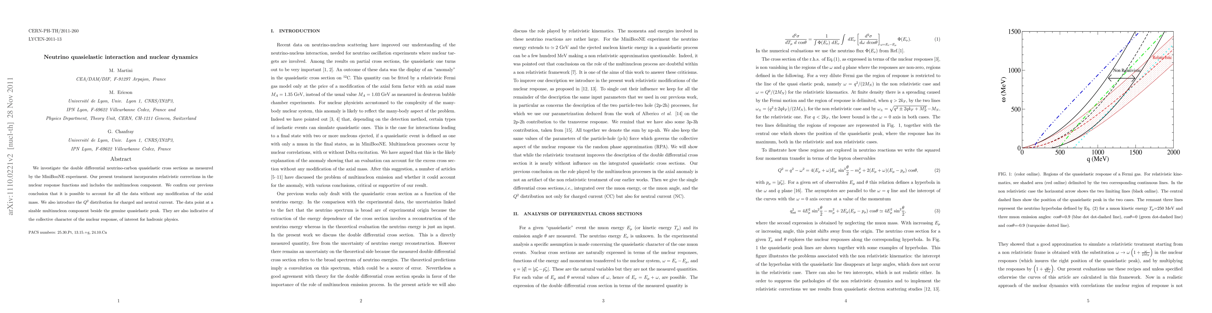 We investigate the double differential neutrino-carbon quasielastic cross sections as measured by the MiniBooNE experiment. Our present treatment incorporates relativistic corrections in the nuclear response functions and includes the multinucleon component. We confirm our previous conclusion that it is possible to account for all the data without any modification of the axial mass. We also introduce the Q^2 distribution for charged and neutral current. The data point at a sizable multinucleon component beside the genuine quasielastic peak. They are also indicative of the collective character of the nuclear response, of interest for hadronic physics.