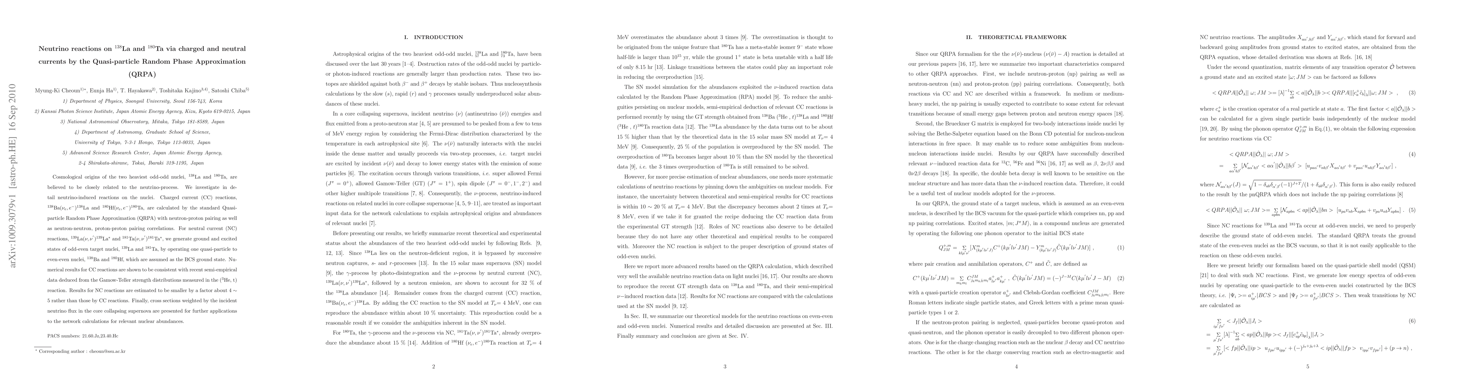 Cosmological origins of the two heaviest odd-odd nuclei, $^{138}$La and $^{180}$Ta, are believed to be closely related to the neutrino-process. We investigate in detail neutrino-induced reactions on the nuclei. Charged current (CC) reactions, $^{138}$Ba$ (\nu_e, e^{-}) ^{138}$La and $^{180}$Hf$ (\nu_e, e^{-}) ^{180}$Ta, are calculated by the standard Quasi-particle Random Phase Approximation (QRPA) with neutron-proton pairing as well as neutron-neutron, proton-proton pairing correlations. For neutral current (NC) reactions, $^{139}$La$ (\nu \nu^{'}) ^{139}${La}$^*$ and $^{181}$Ta$ (\nu, \nu^{'}) ^{181}$Ta$^*$, we generate ground and excited states of odd-even target nuclei, $^{139}$La and $^{181}$Ta, by operating one quasi-particle to even-even nuclei, $^{138}$Ba and $^{180}$Hf, which are assumed as the BCS ground state. Numerical results for CC reactions are shown to be consistent with recent semi-empirical data deduced from the Gamow-Teller strength distributions measured in the ($^{3}$He, t) reaction. Results for NC reactions are estimated to be smaller by a factor about 4 $\sim$ 5 rather than those by CC reactions. Finally, cross sections weighted by the incident neutrino flux in the core collapsing supernova are presented for further applications to the network calculations for relevant nuclear abundances.