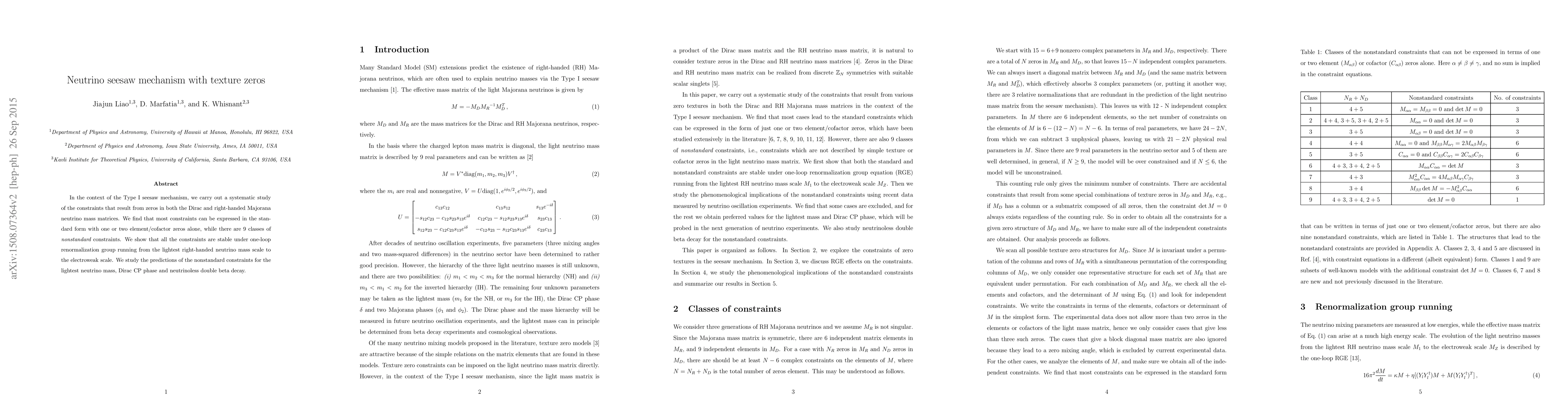 This paper systematically explores the Type I seesaw mechanism's constraints arising from zeros in Dirac and right-handed Majorana neutrino mass matrices, identifying standard and nonstandard constraints. It demonstrates stability of these constraints under renormalization group running and examines their implications for the lightest neutrino mass, Dirac CP phase, and neutrinoless double beta decay.