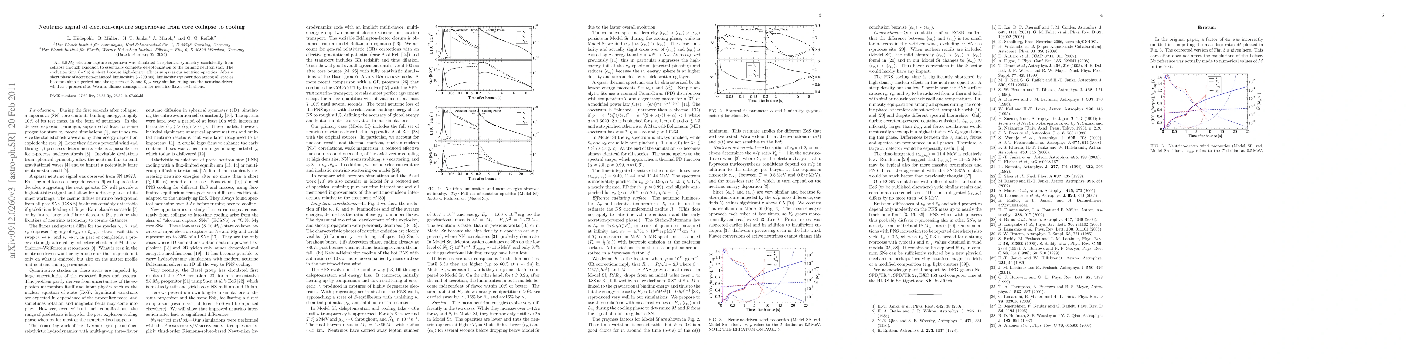 An 8.8 solar mass electron-capture supernova was simulated to study neutrino signal from core collapse to cooling, revealing perfect luminosity equipartition among species.