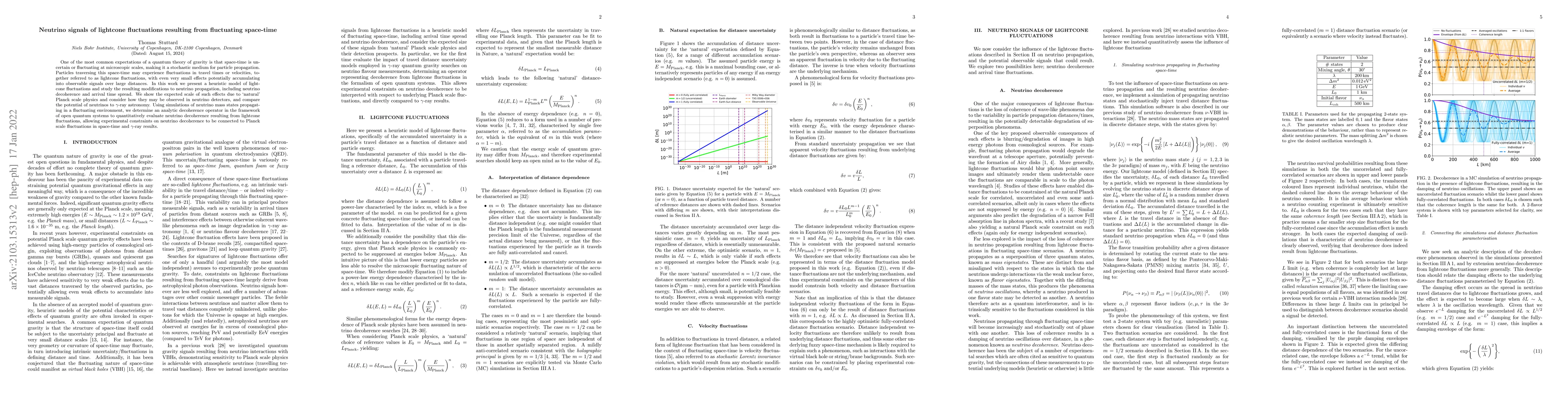 One of the most common expectations of a quantum theory of gravity is that space-time is uncertain or fluctuating at microscopic scales, making it a stochastic medium for particle propagation. Particles traversing this space-time may experience fluctuations in travel times or velocities, together referred to as lightcone fluctuations, with even very small effects potentially accumulating into observable signals over large distances. In this work we present a heuristic model of lightcone fluctuations and study the resulting modifications to neutrino propagation, including neutrino decoherence and arrival time spread. We show the expected scale of such effects due to `natural' Planck scale physics and consider how they may be observed in neutrino detectors, and compare the potential of neutrinos to $\gamma$-ray astronomy. Using simulations of neutrino mass states propagating in a fluctuating environment, we determine an analytic decoherence operator in the framework of open quantum systems to quantitatively evaluate neutrino decoherence resulting from lightcone fluctuations, allowing experimental constraints on neutrino decoherence to be connected to Planck scale fluctuations in space-time and $\gamma$-ray results.