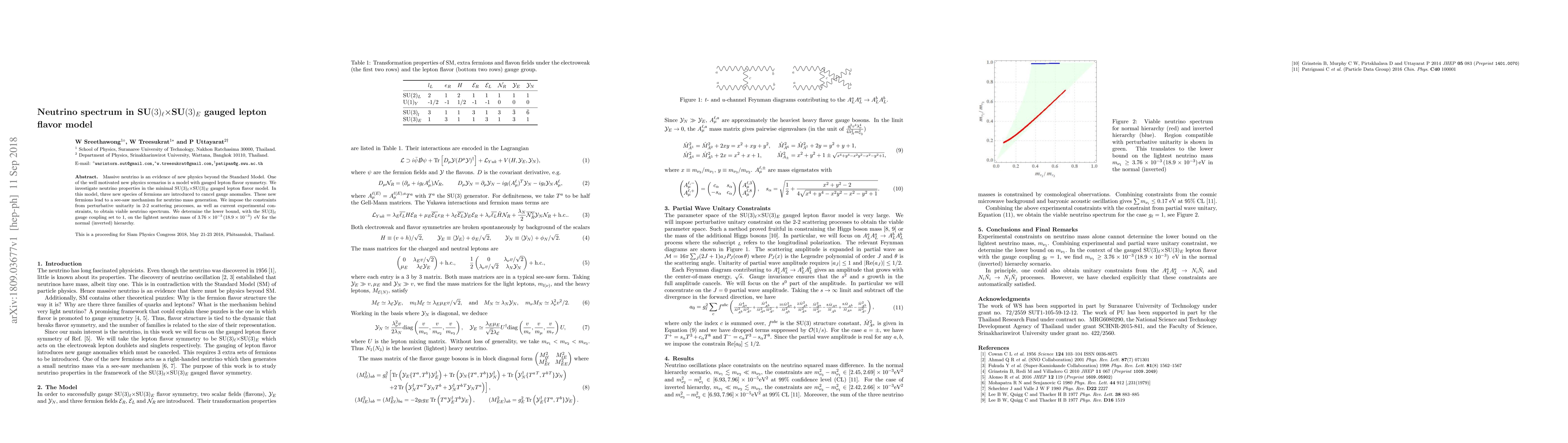 This paper explores the neutrino spectrum in a gauged lepton flavor symmetry model, introducing new fermions to generate neutrino masses via a see-saw mechanism. It sets a lower bound for the lightest neutrino mass at $3.76\times10^{-3}$ eV for normal hierarchy and $18.9\times10^{-3}$ eV for inverted hierarchy, under perturbative unitarity and experimental constraints.