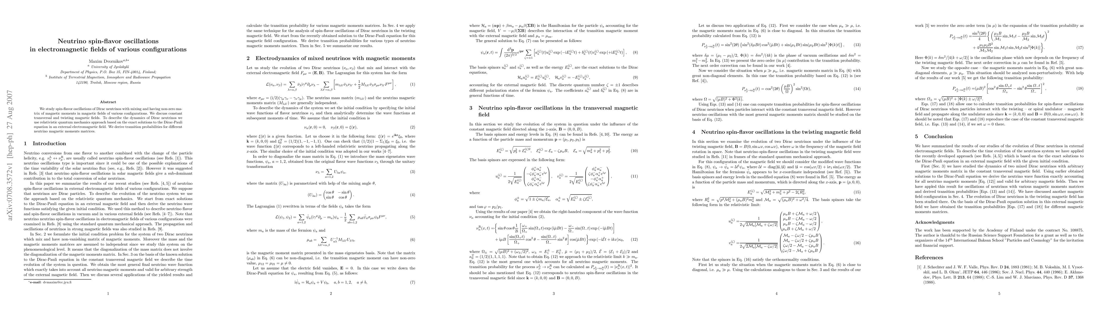This paper investigates the spin-flavor oscillations of Dirac neutrinos in various magnetic field configurations, employing a relativistic quantum mechanics approach to derive transition probabilities for different neutrino magnetic moments. It specifically examines constant transversal and twisting magnetic fields.