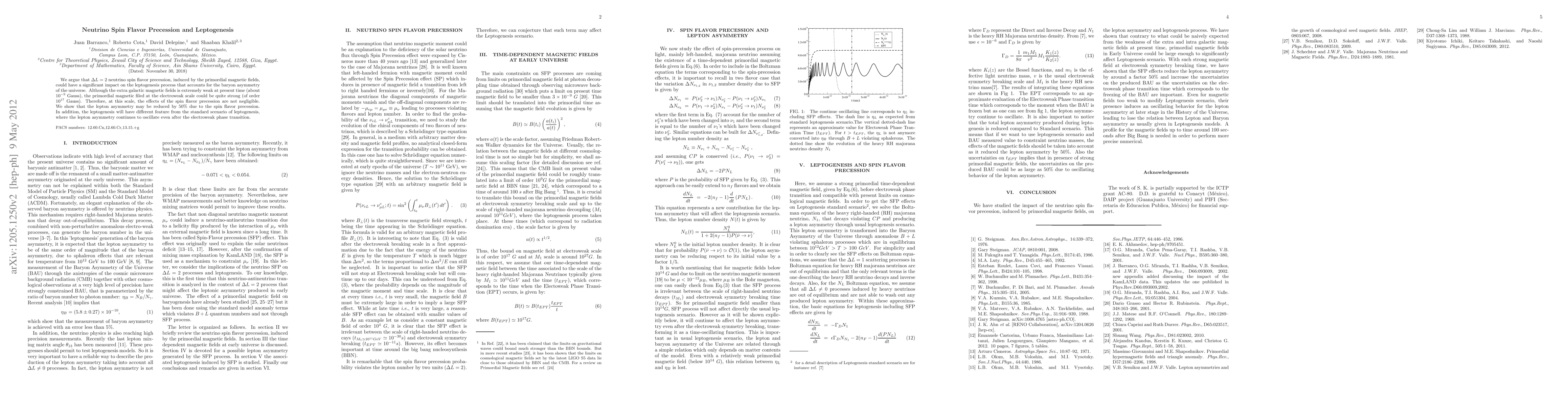 This paper explores how \Delta L=2 neutrino spin flavor precession, driven by strong primordial magnetic fields, impacts leptogenesis and the universe's baryon asymmetry. It suggests that this precession can reduce the lepton asymmetry by 50% and alters the standard leptogenesis scenario, causing the lepton asymmetry to oscillate post-electroweak phase transition.