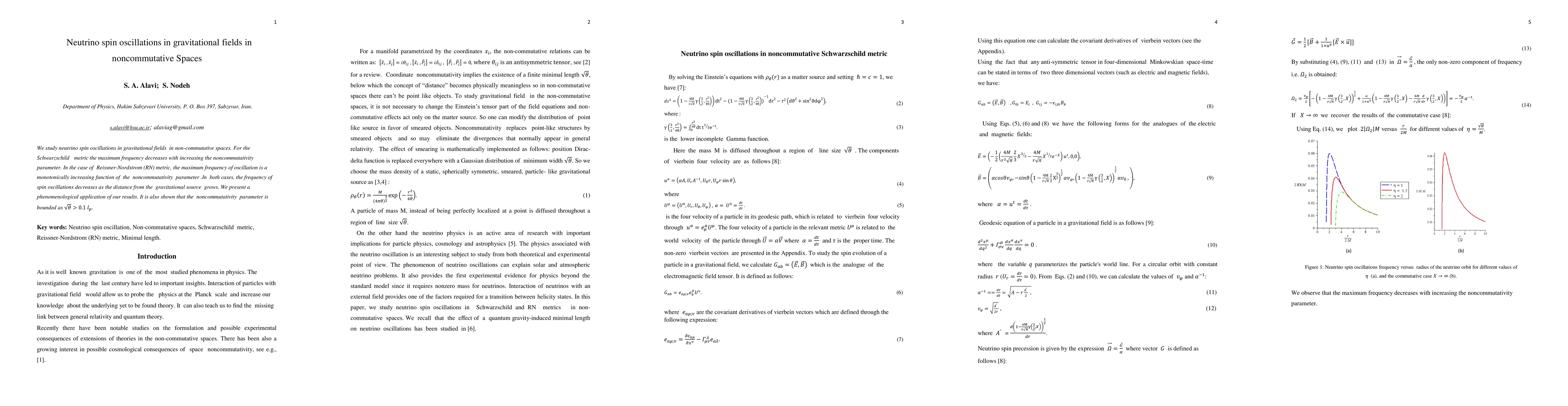 This research paper investigates how neutrino spin oscillations change in non-commutative spaces with varying gravitational fields, finding that maximum frequency decreases with distance from the source and is bounded by a parameter.