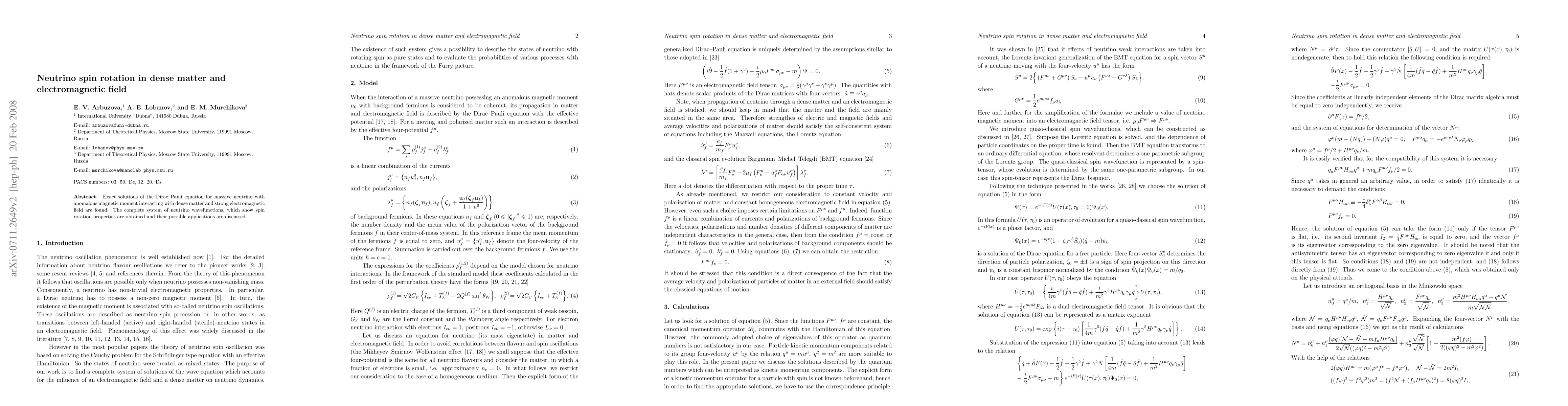 This paper presents exact solutions for the Dirac-Pauli equation describing the behavior of massive neutrinos with anomalous magnetic moments in dense matter and strong electromagnetic fields, revealing spin rotation properties and potential applications.