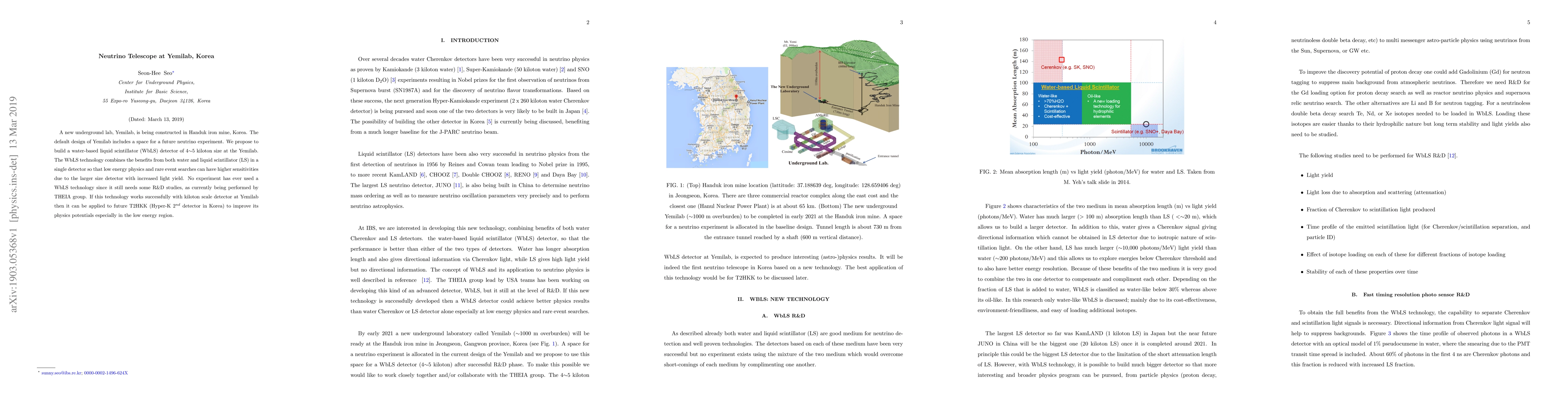 A new underground lab, Yemilab, is being constructed in Handuk iron mine, Korea. The default design of Yemilab includes a space for a future neutrino experiment. We propose to build a water-based liquid scintillator (WbLS) detector of 4$\sim$5 kiloton size at the Yemilab. The WbLS technology combines the benefits from both water and liquid scintillator (LS) in a single detector so that low energy physics and rare event searches can have higher sensitivities due to the larger size detector with increased light yield. No experiment has ever used a WbLS technology since it still needs some R&D studies, as currently being performed by THEIA group. If this technology works successfully with kiloton scale detector at Yemilab then it can be applied to future T2HKK (Hyper-K 2$^{nd}$ detector in Korea) to improve its physics potentials especially in the low energy region.