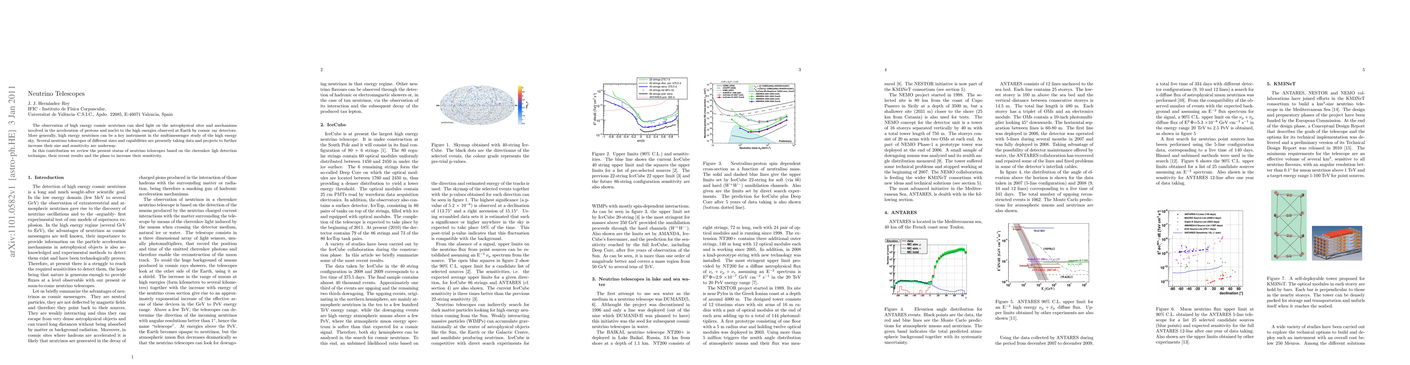 The observation of high energy cosmic neutrinos can shed light on the astrophysical sites and mechanisms involved in the acceleration of protons and nuclei to the high energies observed at Earth by cosmic ray detectors. More generally, high energy neutrinos can be a key instrument in the multimessenger study of the high energy sky. Several neutrino telescopes of different sizes and capabilities are presently taking data and projects to further increase their size and sensitivity are underway.In this contribution we review the present status of neutrino telescopes based on the cherenkov ligh detection technique, their recent results and the plans to increase their sensitivity.