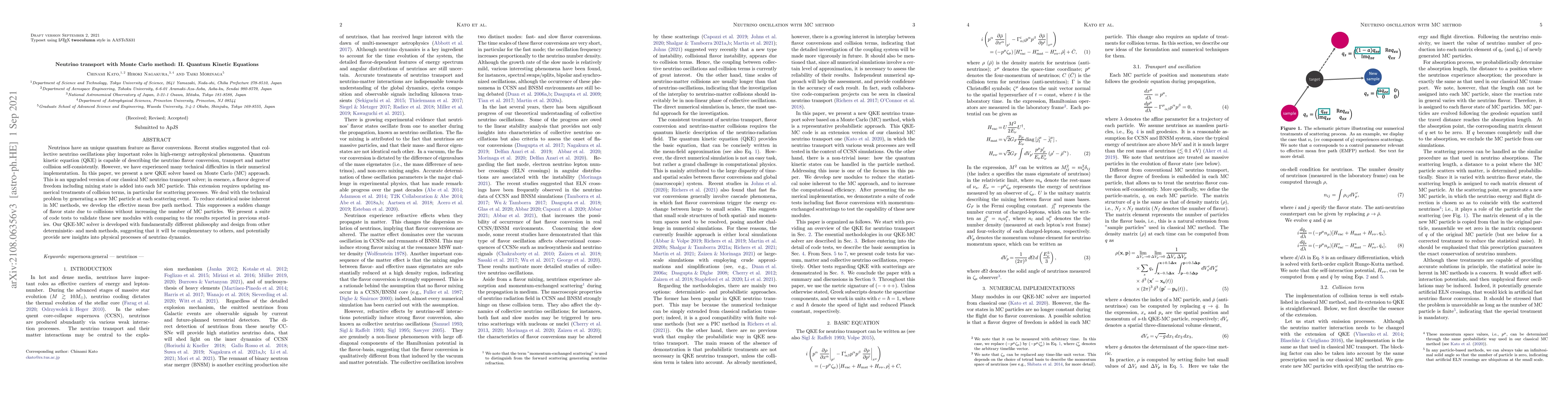 Neutrinos have an unique quantum feature as flavor conversions. Recent studies suggested that collective neutrino oscillations play important roles in high-energy astrophysical phenomena. Quantum kinetic equation (QKE) is capable of describing the neutrino flavor conversion, transport and matter collision self-consistently. However, we have experienced many technical difficulties in their numerical implementation. In this paper, we present a new QKE solver based on Monte Carlo (MC) approach. This is an upgraded version of our classical MC neutrino transport solver; in essence, a flavor degree of freedom including mixing state is added into each MC particle. This extension requires updating numerical treatments of collision terms, in particular for scattering processes. We deal with the technical problem by generating a new MC particle at each scattering event. To reduce statistical noise inherent in MC methods, we develop the effective mean free path method. This suppresses a sudden change of flavor state due to collisions without increasing the number of MC particles. We present a suite of code tests to validate these new modules with comparing to the results reported in previous studies. Our QKE-MC solver is developed with fundamentally different philosophy and design from other deterministic- and mesh methods, suggesting that it will be complementary to others, and potentially provide new insights into physical processes of neutrino dynamics.