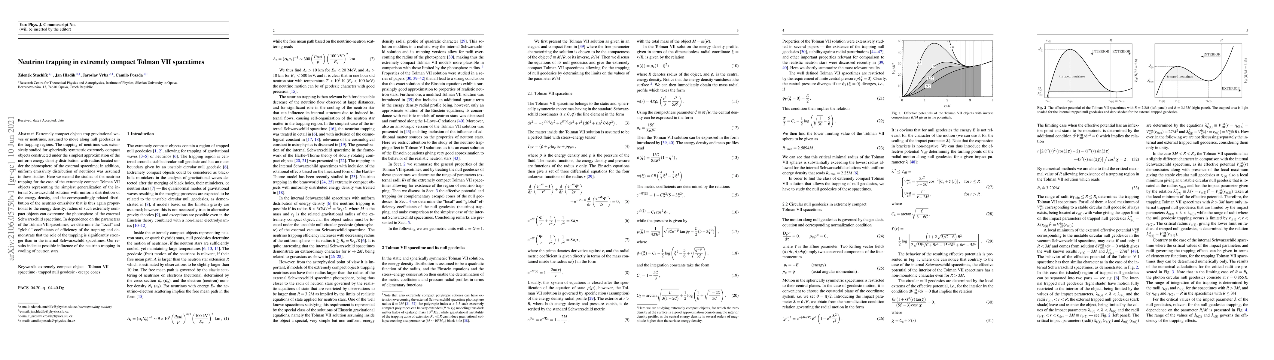 This paper investigates neutrino trapping in extremely compact Tolman VII spacetimes, extending previous studies on spherically symmetric objects. It determines local and global trapping efficiency coefficients, showing stronger trapping effects compared to Schwarzschild spacetimes, which may impact neutron star cooling.