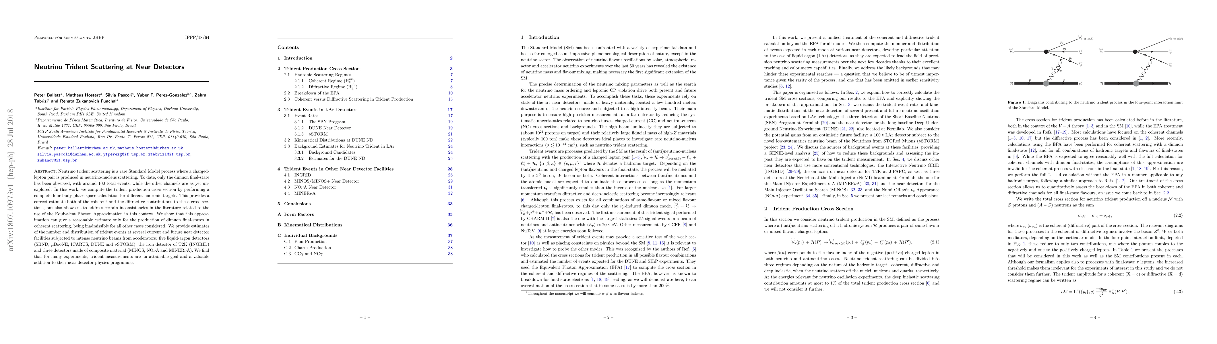 Neutrino trident scattering is a rare Standard Model process where a charged-lepton pair is produced in neutrino-nucleus scattering. To date, only the dimuon final-state has been observed, with around 100 total events, while the other channels are as yet unexplored. In this work, we compute the trident production cross section by performing a complete four-body phase space calculation for different hadronic targets. This provides a correct estimate both of the coherent and the diffractive contributions to these cross sections, but also allows us to address certain inconsistencies in the literature related to the use of the Equivalent Photon Approximation in this context. We show that this approximation can give a reasonable estimate only for the production of dimuon final-states in coherent scattering, being inadmissible for all other cases considered. We provide estimates of the number and distribution of trident events at several current and future near detector facilities subjected to intense neutrino beams from accelerators: five liquid-argon detectors (SBND, $\mu$BooNE, ICARUS, DUNE and $\nu$STORM), the iron detector of T2K (INGRID) and three detectors made of composite material (MINOS, NO$\nu$A and MINER$\nu$A). We find that for many experiments, trident measurements are an attainable goal and a valuable addition to their near detector physics programme.