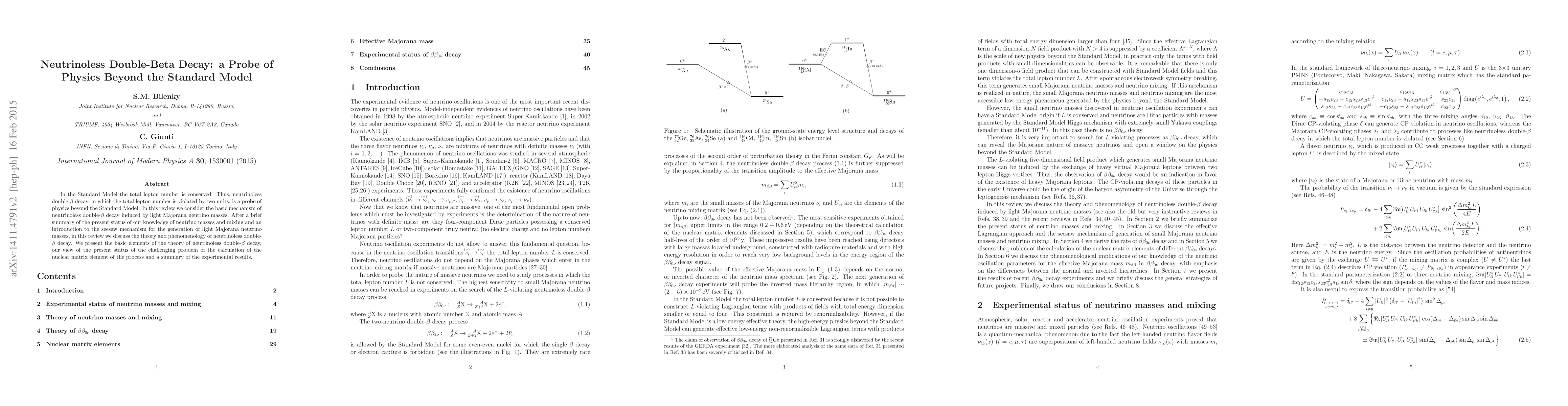 This paper reviews neutrinoless double-beta decay as a probe for physics beyond the Standard Model, focusing on the mechanism induced by light Majorana neutrino masses. It covers the theory, nuclear matrix element calculations, and current experimental results.