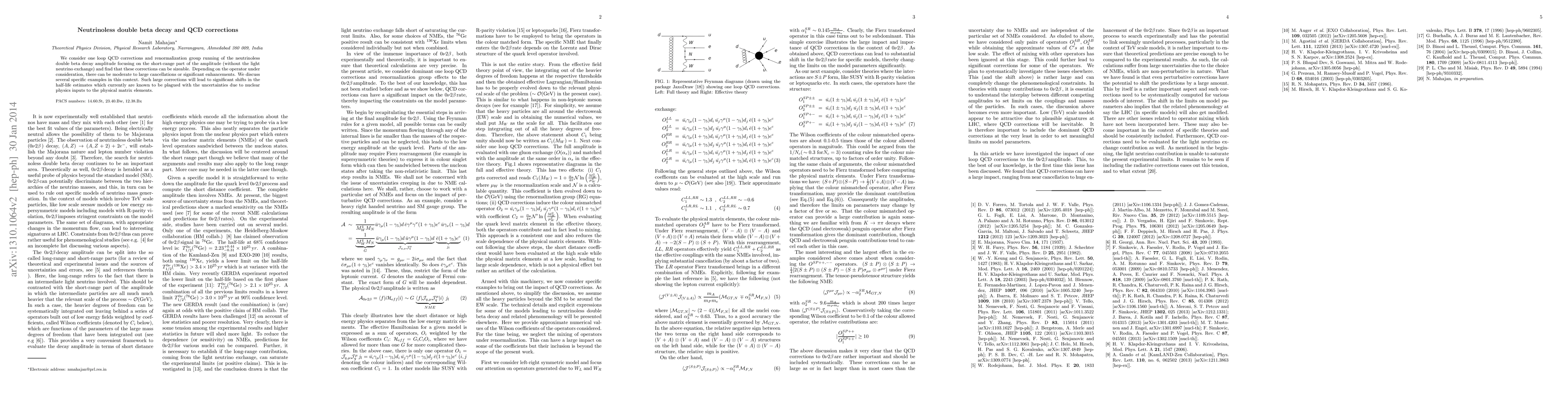 We consider one loop QCD corrections and renormalization group running of the neutrinoless double beta decay amplitude focusing on the short-range part of the amplitude (without the light neutrino exchange) and find that these corrections can be sizeable. Depending on the operator under consideration, there can be moderate to large cancellations or significant enhancements. We discuss several specific examples in this context. Such large corrections will lead to significant shifts in the half-life estimates which currently are known to be plagued with the uncertainties due to nuclear physics inputs to the physical matrix elements.