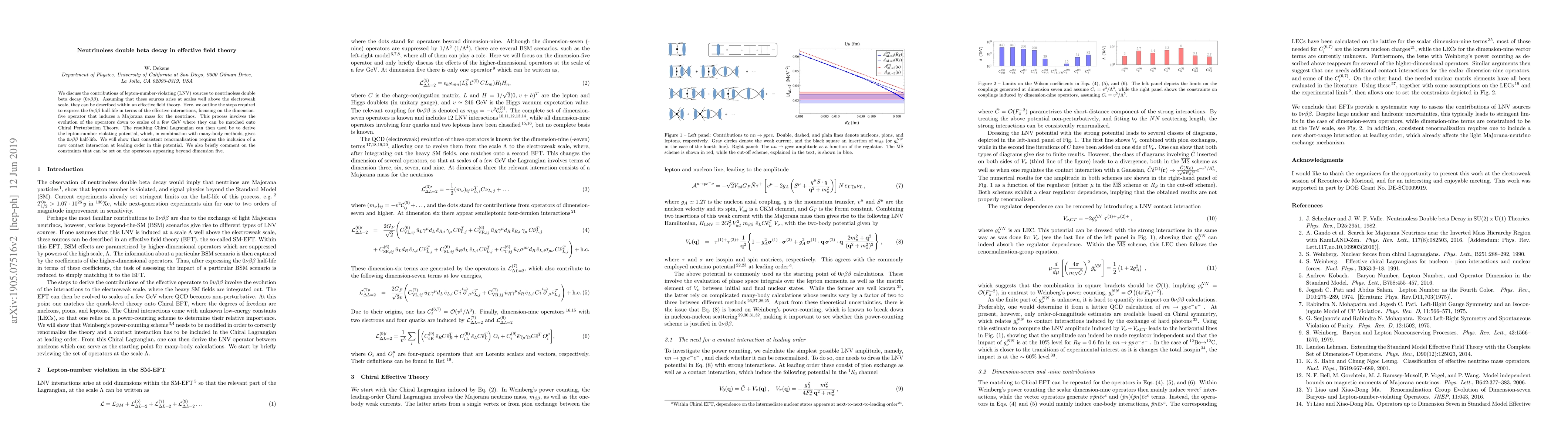 This paper explores the contributions of lepton-number-violating sources to neutrinoless double beta decay within an effective field theory framework, focusing on the dimension-five operator that induces Majorana neutrino masses. It details the process of matching these operators to Chiral Perturbation Theory and discusses the implications for the decay half-life, including the necessity of a new contact interaction.