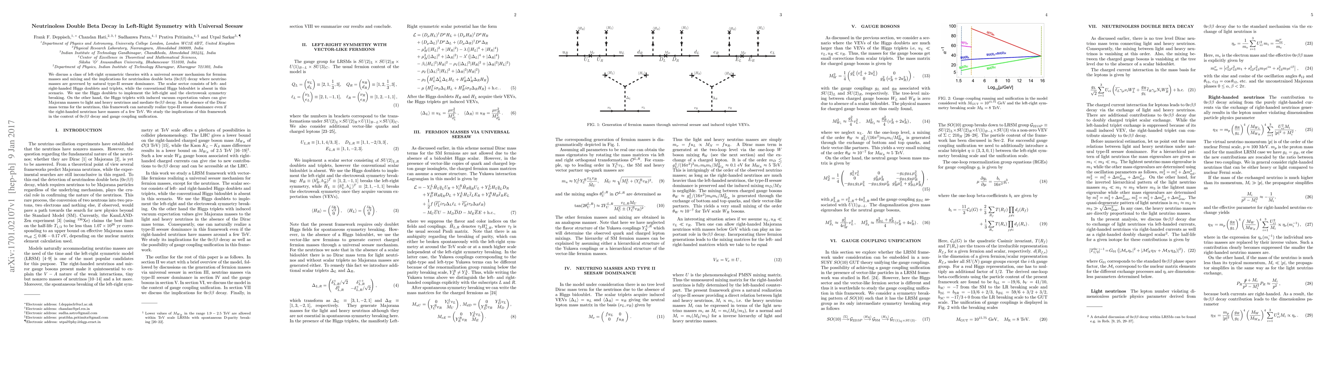 This paper explores left-right symmetric theories with a universal seesaw mechanism, focusing on the implications for neutrinoless double beta decay driven by type-II seesaw dominance. The model features left- and right-handed Higgs doublets and triplets, with Higgs triplets mediating $0\nu\beta\beta$ decay.
