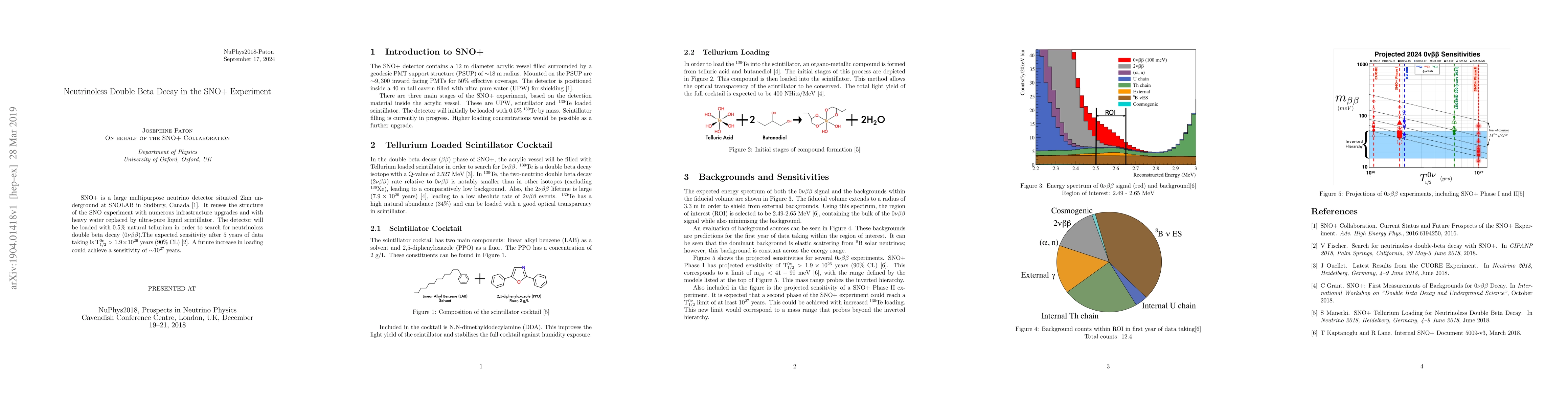 The SNO+ experiment aims to detect neutrinoless double beta decay with a sensitivity of 1.9 x 10^26 years after 5 years of data taking, offering a potential breakthrough in understanding neutrino physics.