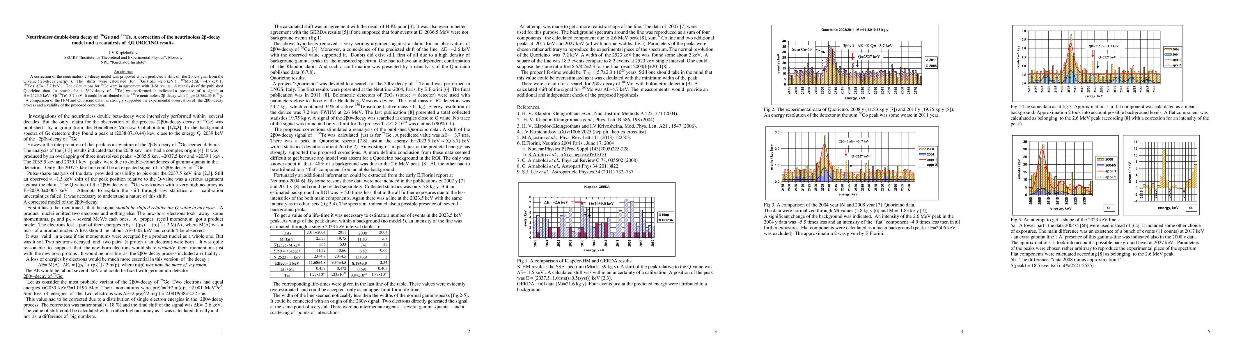This paper proposes a correction to the neutrinoless double-beta decay model, predicting shifts in the 2β0ν-signal for 76Ge, 100Mo, and 130Te. A reanalysis of Quoricino data suggests a potential signal for 130Te decay, supporting the observation of the 2β0ν-decay process and validating the proposed correction.