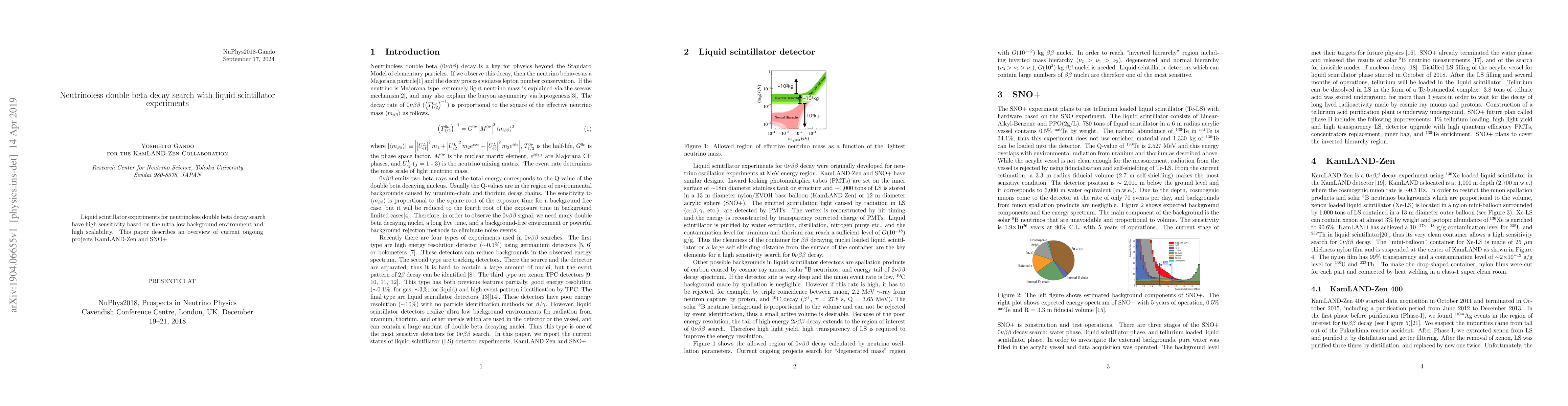 Summary: This paper provides an overview of liquid scintillator experiments, specifically KamLAND-Zen and SNO+, aimed at detecting neutrinoless double beta decay, leveraging their ultra-low background and scalability for high sensitivity. Current ongoing projects are highlighted.