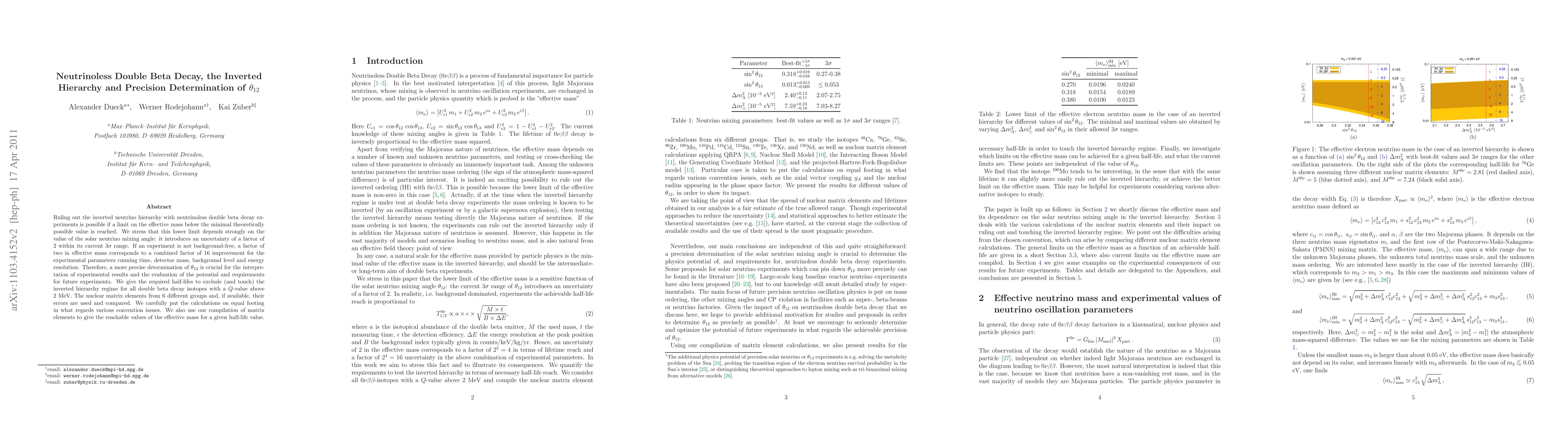 This research emphasizes the importance of precisely determining the solar neutrino mixing angle, theta(12), for interpreting neutrinoless double beta decay experiment results. It highlights that the lower limit for ruling out the inverted neutrino hierarchy depends significantly on theta(12) and introduces a 2-fold uncertainty due to its current 3 sigma range. The study also provides required half-lives to exclude the inverted hierarchy for various double beta decay isotopes, comparing nuclear matrix elements from different groups and addressing convention issues.