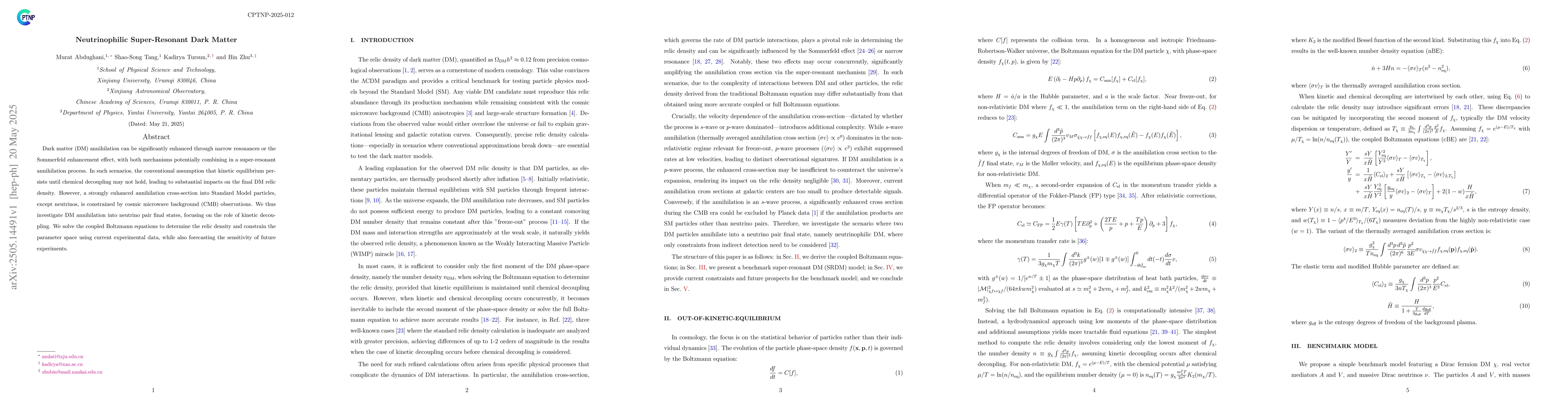 Development of a framework to analyze dark matter annihilation into neutrino pairs, considering kinetic decoupling effects and super-resonant processes.