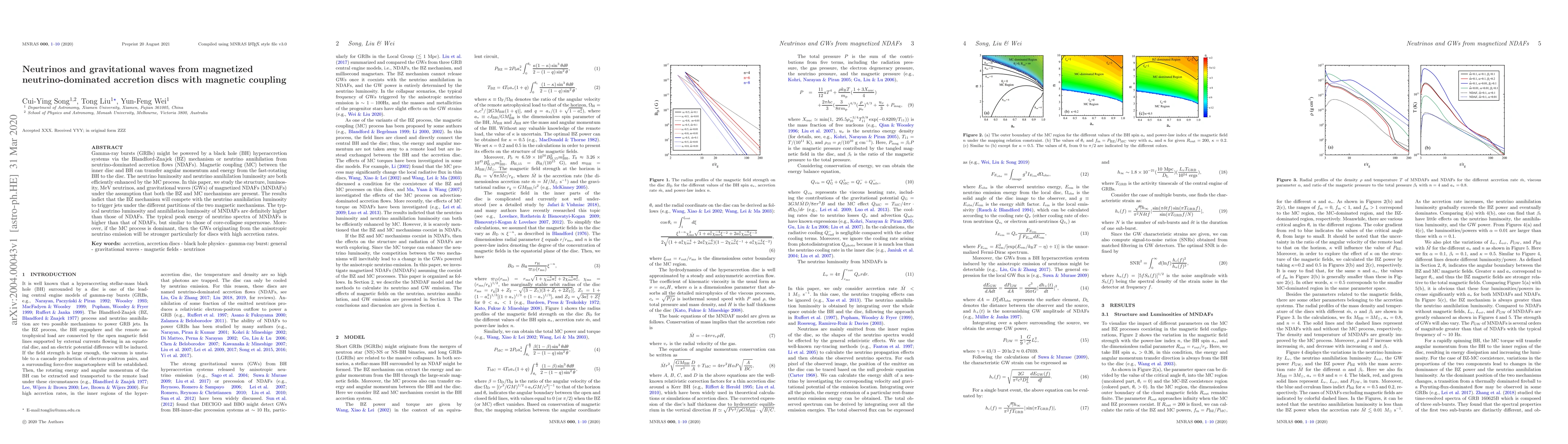 Gamma-ray bursts (GRBs) might be powered by a black hole (BH) hyperaccretion systems via the Blandford-Znajek (BZ) mechanism or neutrino annihilation from neutrino-dominated accretion flows (NDAFs). Magnetic coupling (MC) between the inner disc and BH can transfer angular momentum and energy from the fast-rotating BH to the disc. The neutrino luminosity and neutrino annihilation luminosity are both efficiently enhanced by the MC process. In this paper, we study the structure, luminosity, MeV neutrinos, and gravitational waves (GWs) of magnetized NDAFs (MNDAFs) under the assumption that both the BZ and MC mechanisms are present. The results indict that the BZ mechanism will compete with the neutrino annihilation luminosity to trigger jets under the different partitions of the two magnetic mechanisms. The typical neutrino luminosity and annihilation luminosity of MNDAFs are definitely higher than those of NDAFs. The typical peak energy of neutrino spectra of MNDAFs is higher than that of NDAFs, but similar to those of core-collapse supernovae. Moreover, if the MC process is dominant, then the GWs originating from the anisotropic neutrino emission will be stronger particularly for discs with high accretion rates.
