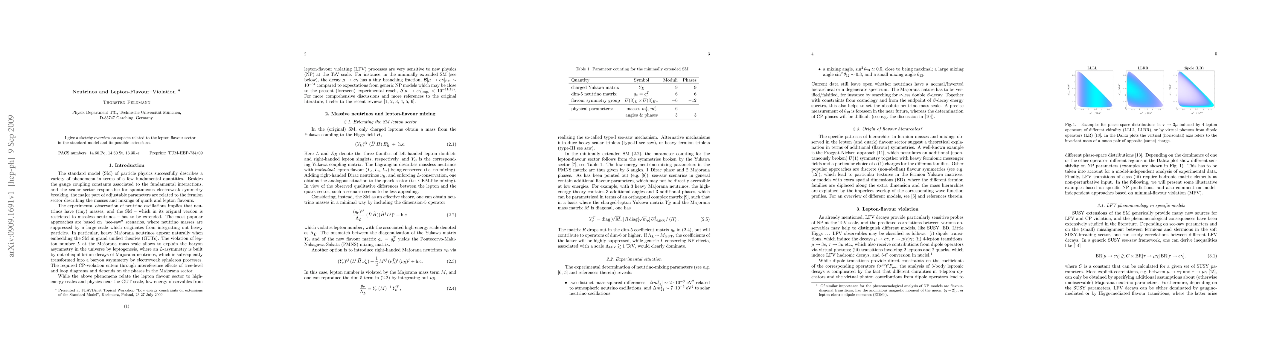 I give a sketchy overview on aspects related to the lepton flavour sector in the standard model and its possible extensions.