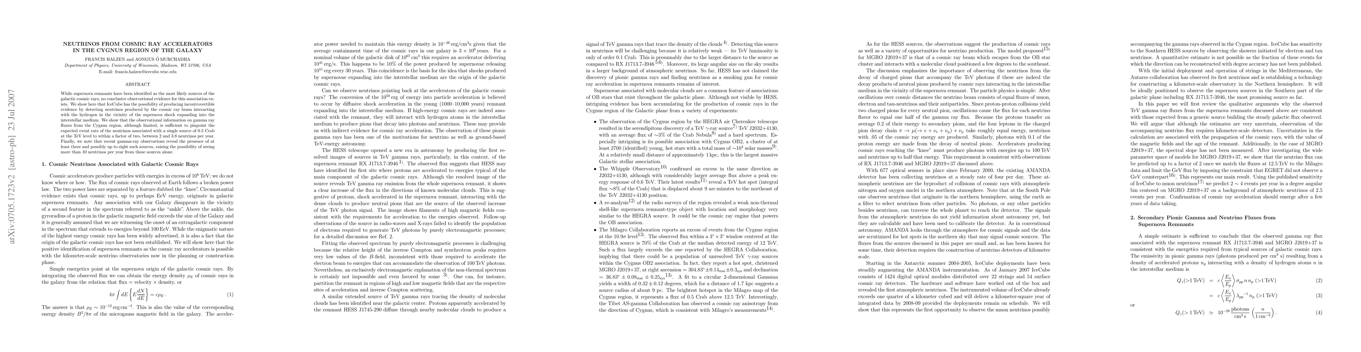 While supernova remnants have been identified as the most likely sources of the galactic cosmic rays, no conclusive observational evidence for this association exists. We show here that IceCube has the possibility of producing incontrovertible evidence by detecting neutrinos produced by the cosmic ray beam interacting with the hydrogen in the vicinity of the supernova shock expanding into the interstellar medium. We show that the observational information on gamma ray fluxes from the Cygnus region, although limited, is sufficient to pinpoint the expected event rate of the neutrinos associated with a single source of 0.5 Crab at the TeV level to within a factor of two, between 2 and 3.8 neutrinos per year. Finally, we note that recent gamma-ray observations reveal the presence of at least three and possibly up to eight such sources, raising the possibility of seeing more than 10 neutrinos per year from these sources alone.
