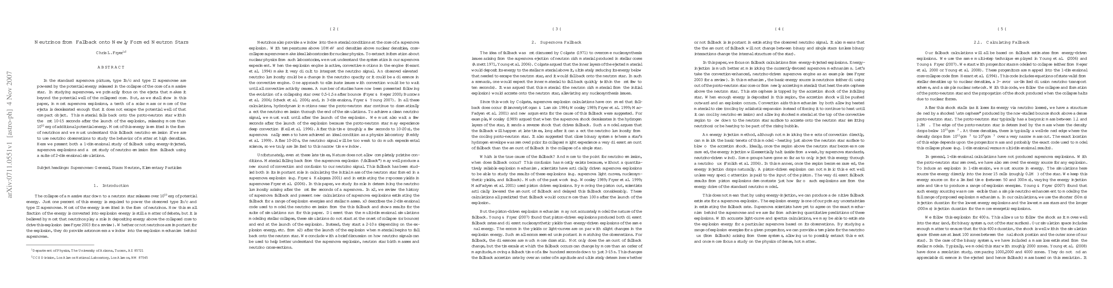 This paper investigates the neutrino emissions from material that falls back onto newly formed neutron stars during supernova explosions. It highlights that significant fallback occurs, releasing substantial energy primarily in the form of neutrinos, which is crucial for understanding matter behavior at high densities.