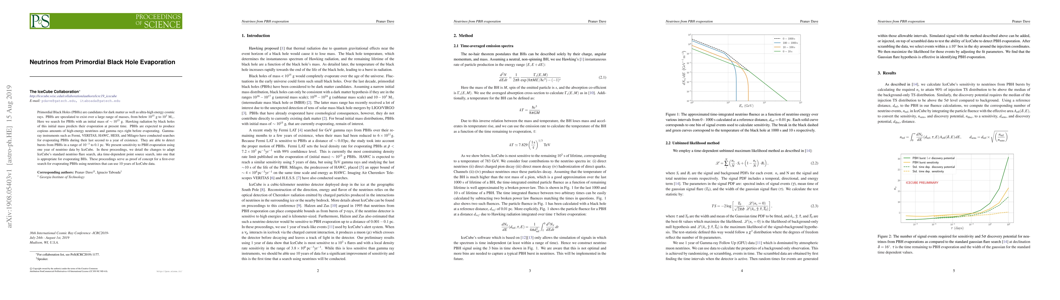 This paper explores the detection of neutrinos from the evaporation of primordial black holes (PBHs) with initial masses around $10^{15}$ g. It adapts IceCube's neutrino flare search to identify PBHs through their high-energy neutrino emissions and presents a proof of concept for a comprehensive search using 10 years of IceCube data.