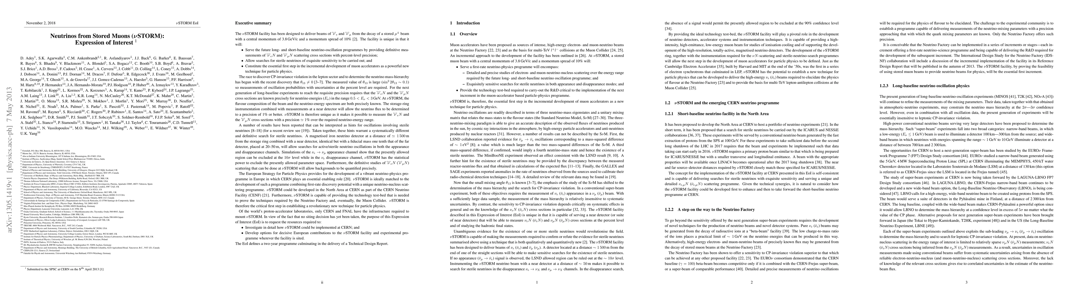 The nuSTORM facility aims to produce electron and muon neutrinos from a stored muon beam, offering precise measurements for neutrino-oscillation programs and searches for sterile neutrinos. The Expression of Interest seeks to explore nuSTORM's implementation at CERN and develop European contributions, culminating in a Technical Design Report.