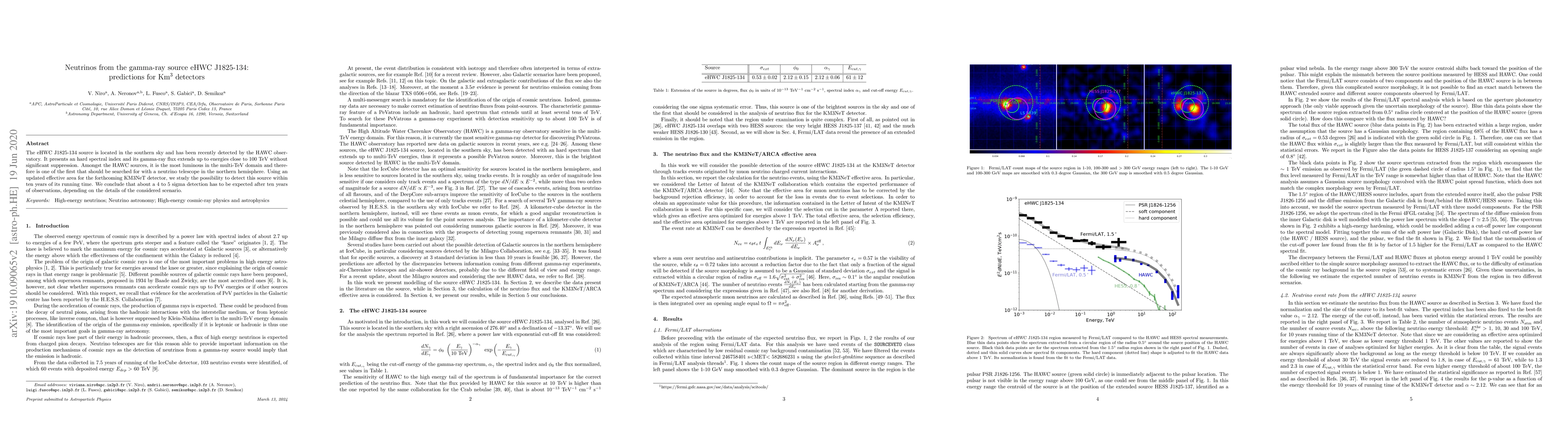 The eHWC J1825-134 source is located in the southern sky and has been recently detected by the HAWC observatory. It presents an hard spectral index and its gamma-ray flux extends up to energies close to 100 TeV without significant suppression. Amongst the HAWC sources, it is the most luminous in the multi-TeV domain and therefore is one of the first that should be searched for with a neutrino telescope in the northern hemisphere. Using an updated effective area for the forthcoming KM3NeT detector, we study the possibility to detect this source within ten years of its running time. We conclude that about a 4 to 5 sigma detection has to be expected after ten years of observations, depending on the details of the considered scenario.