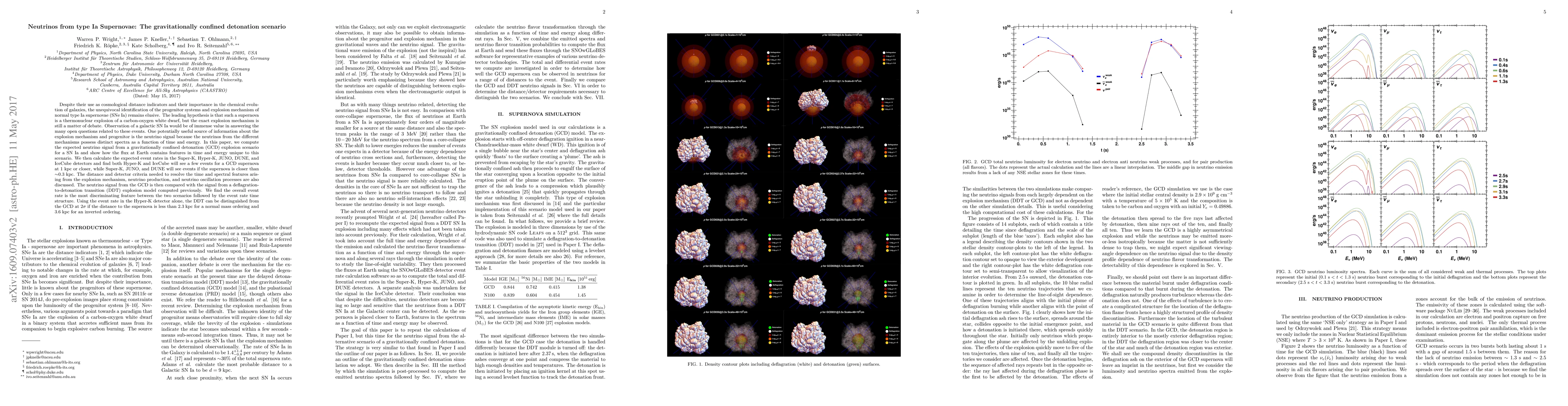 This paper investigates the neutrino signal from a gravitationally confined detonation (GCD) explosion scenario for a type Ia supernova, comparing it with a deflagration-to-detonation transition (DDT) model. It finds that detectors like Hyper-K and IceCube can detect a few events from a GCD supernova within 1 kpc, aiding in distinguishing between explosion mechanisms.