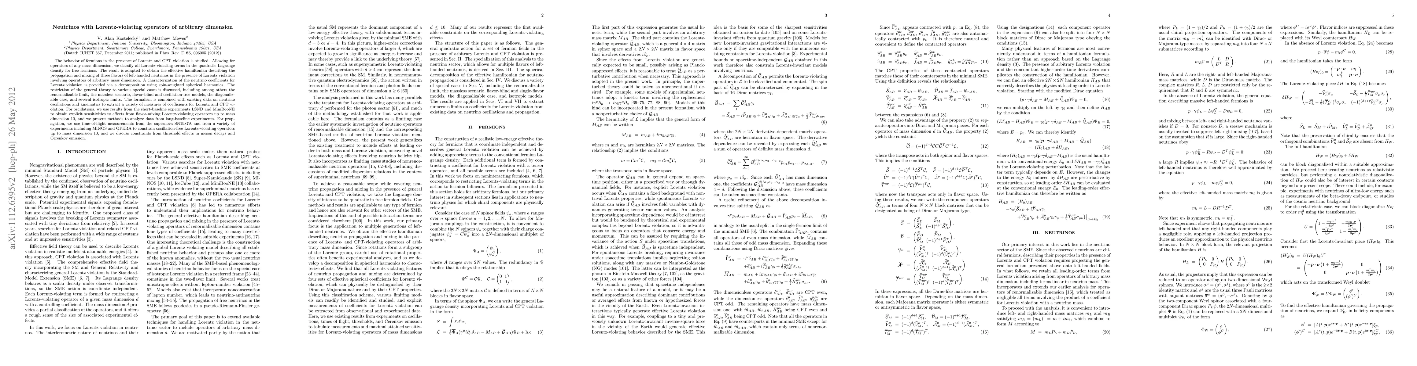 The paper presents a detailed classification and analysis of Lorentz-violating operators of arbitrary mass dimension for neutrinos, providing a systematic approach to study such effects in particle physics.