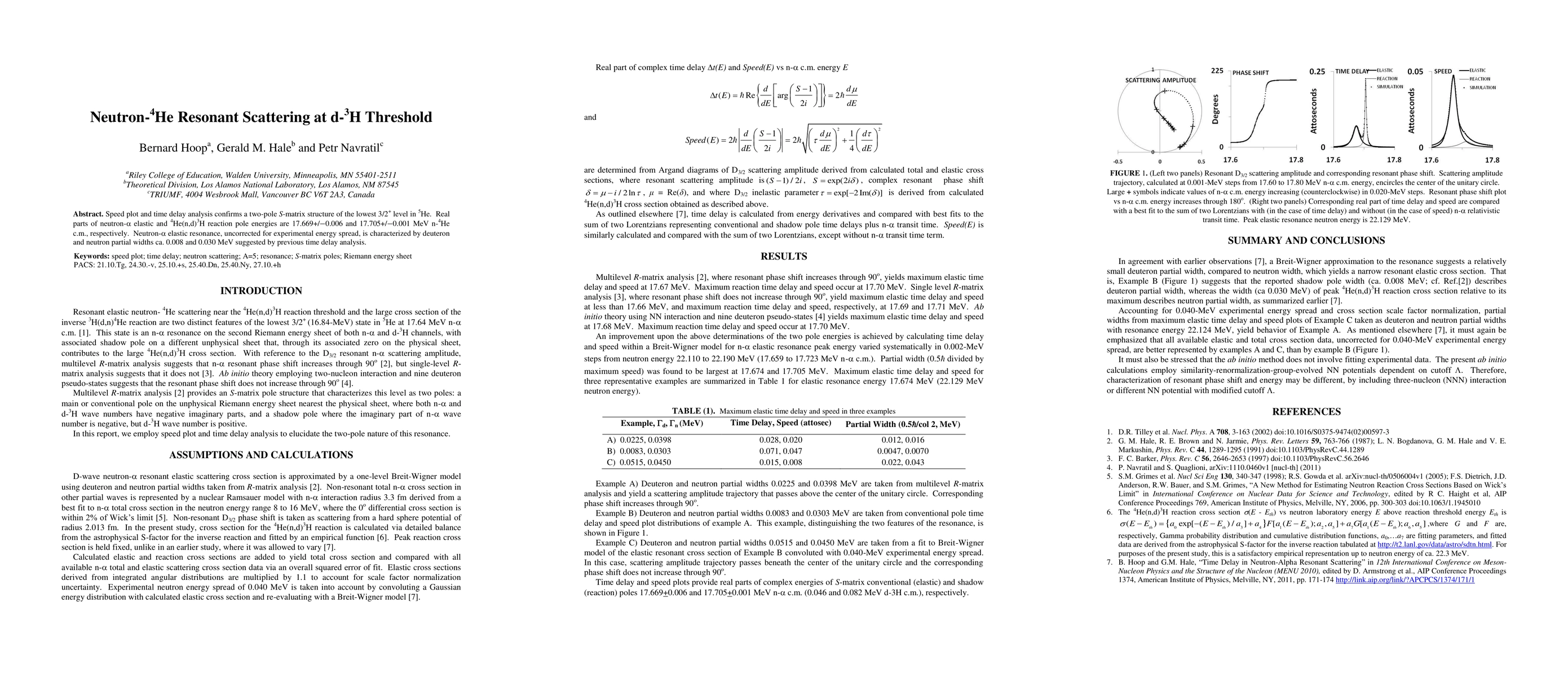 Speed plot and time delay analysis confirms a two-pole S-matrix structure of the lowest 3/2+ level in 5He. Real parts of neutron-alpha elastic and 4He(n,d)3H reaction pole energies are 17.669+/-0.006 and 17.705+/-0.001 MeV n-4He c.m., respectively. Neutron-alpha elastic resonance, uncorrected for experimental energy spread, is characterized by deuteron and neutron partial widths ca. 0.008 and 0.030 MeV suggested by previous time delay analysis.