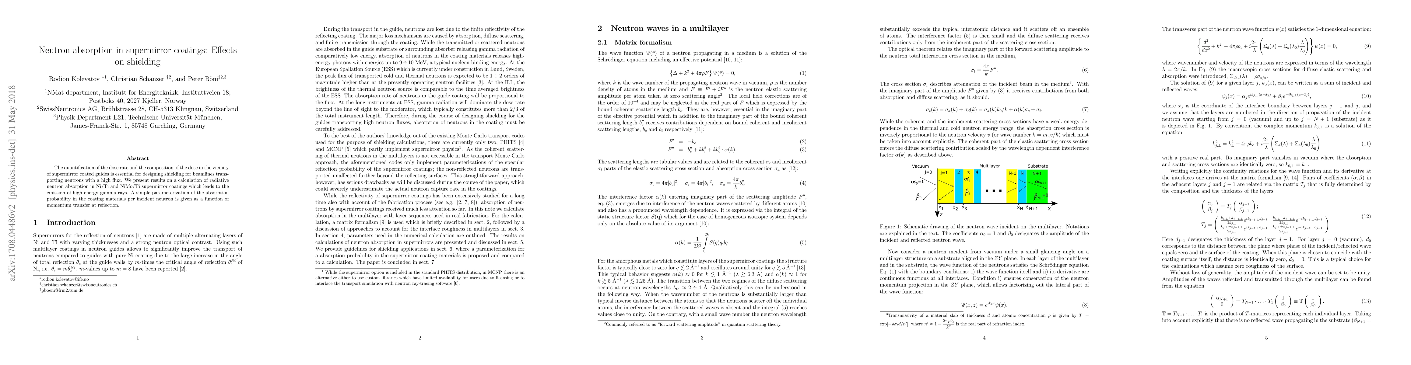 This study quantifies neutron absorption in Ni/Ti and NiMo/Ti supermirror coatings, revealing their impact on shielding design for high-flux neutron beamlines. The research provides a parameterization of absorption probability based on momentum transfer, highlighting the emission of high-energy gamma rays.