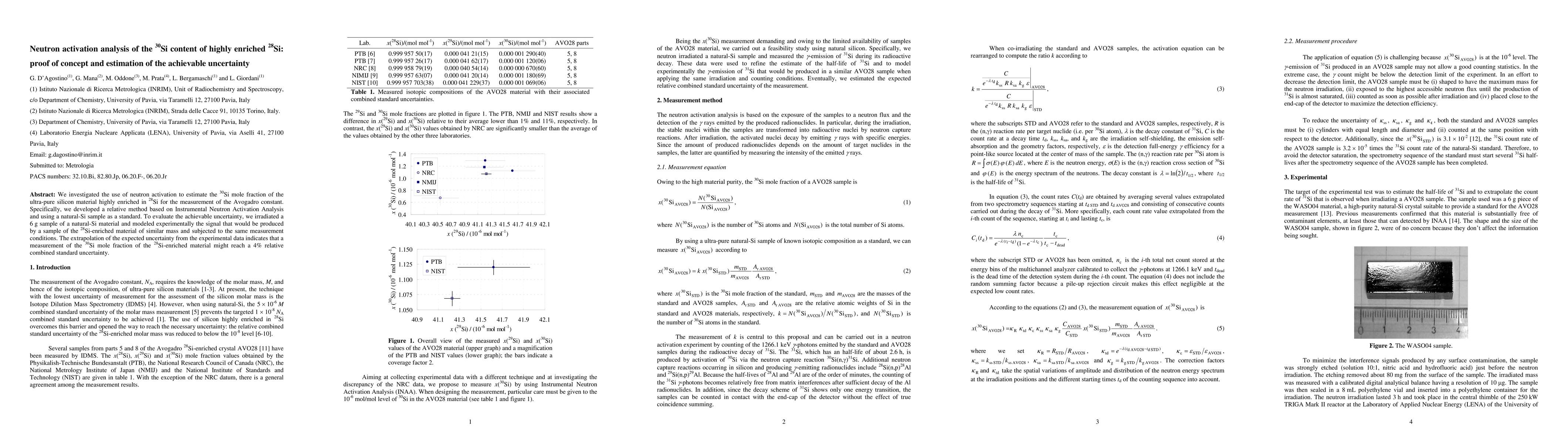 This paper explores neutron activation analysis to determine the 30Si mole fraction in highly enriched 28Si silicon, crucial for Avogadro constant measurements. The study employs a relative method using natural-Si as a standard and estimates a 4% relative combined standard uncertainty for the measurement.
