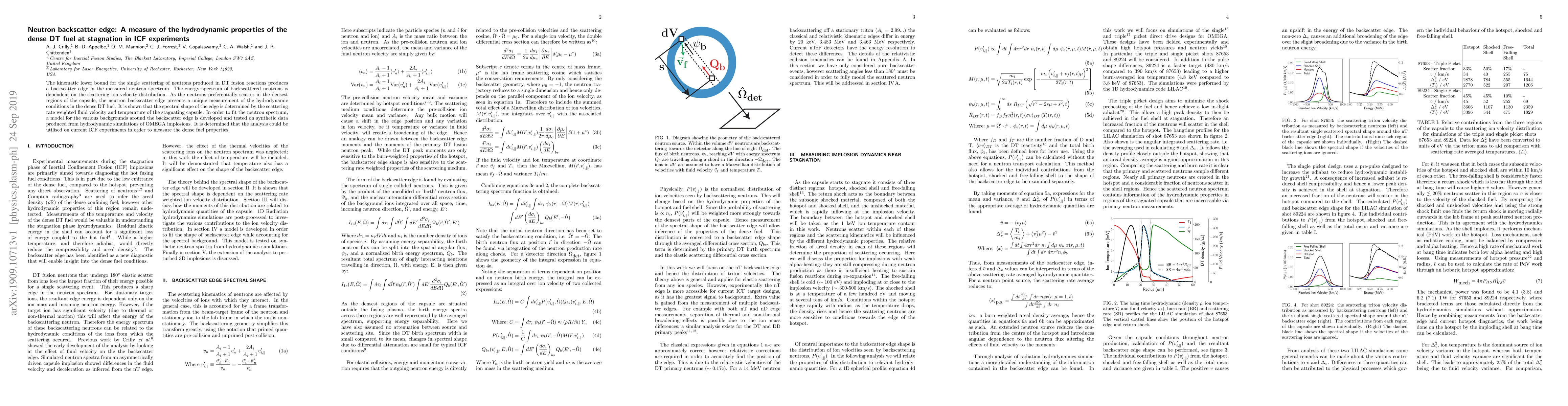 The kinematic lower bound for the single scattering of neutrons produced in DT fusion reactions produces a backscatter edge in the measured neutron spectrum. The energy spectrum of backscattered neutrons is dependent on the scattering ion velocity distribution. As the neutrons preferentially scatter in the densest regions of the capsule, the neutron backscatter edge presents a unique measurement of the hydrodynamic conditions in the dense DT fuel. It is shown that the spectral shape of the edge is determined by the scattering rate weighted fluid velocity and temperature of the stagnating capsule. In order to fit the neutron spectrum, a model for the various backgrounds around the backscatter edge is developed and tested on synthetic data produced from hydrodynamic simulations of OMEGA implosions. It is determined that the analysis could be utilised on current ICF experiments in order to measure the dense fuel properties.