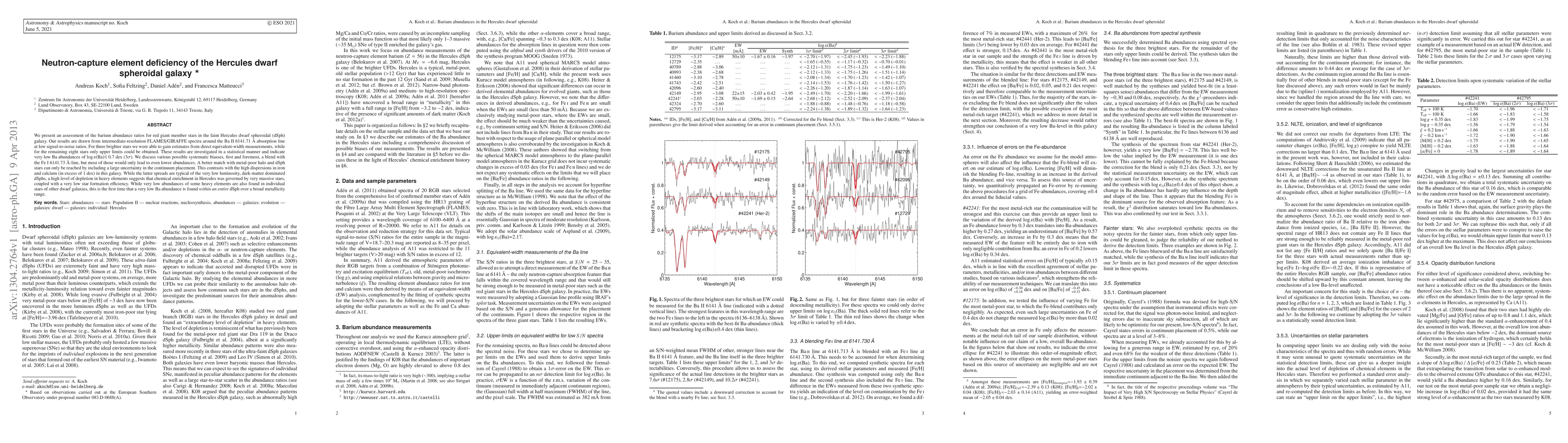 This study finds extremely low barium abundances in the Hercules dwarf spheroidal galaxy, indicating significant depletion of neutron-capture elements. The results suggest that the galaxy's chemical enrichment was driven by massive stars with low star formation efficiency, contrasting with typical dispersions in iron and calcium.