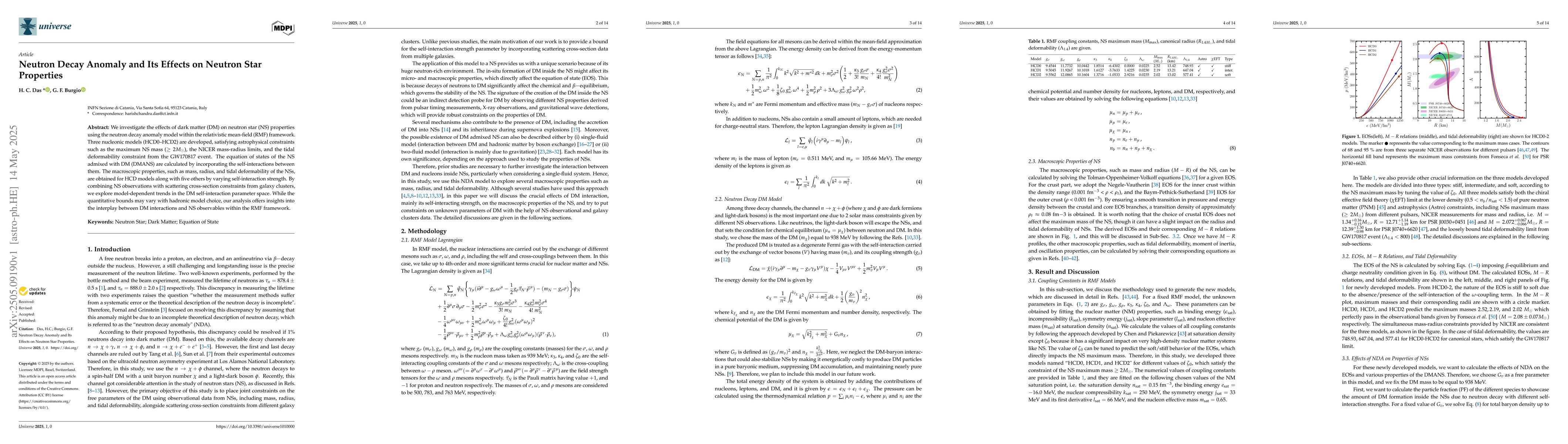 This work distinguishes itself by examining the neutron decay anomaly's effects on NS properties using DM within the RMF framework, providing a novel approach to understanding both neutron stars and dark matter.