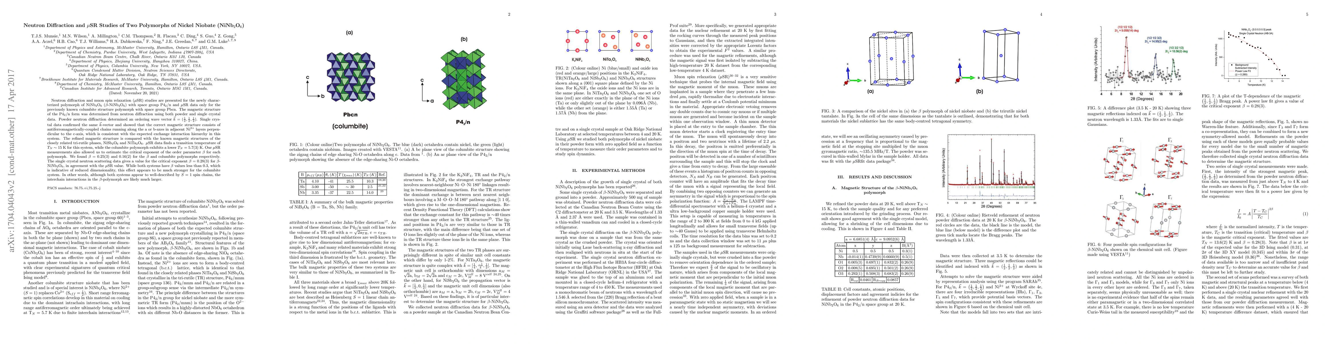 Researchers studied two polymorphs of nickel niobate (NiNb2O6) using neutron diffraction and muon spin relaxation ($μ$SR), determining the magnetic structure of one form and finding a lower transition temperature than another, with implications for understanding spin chain interactions in these materials.