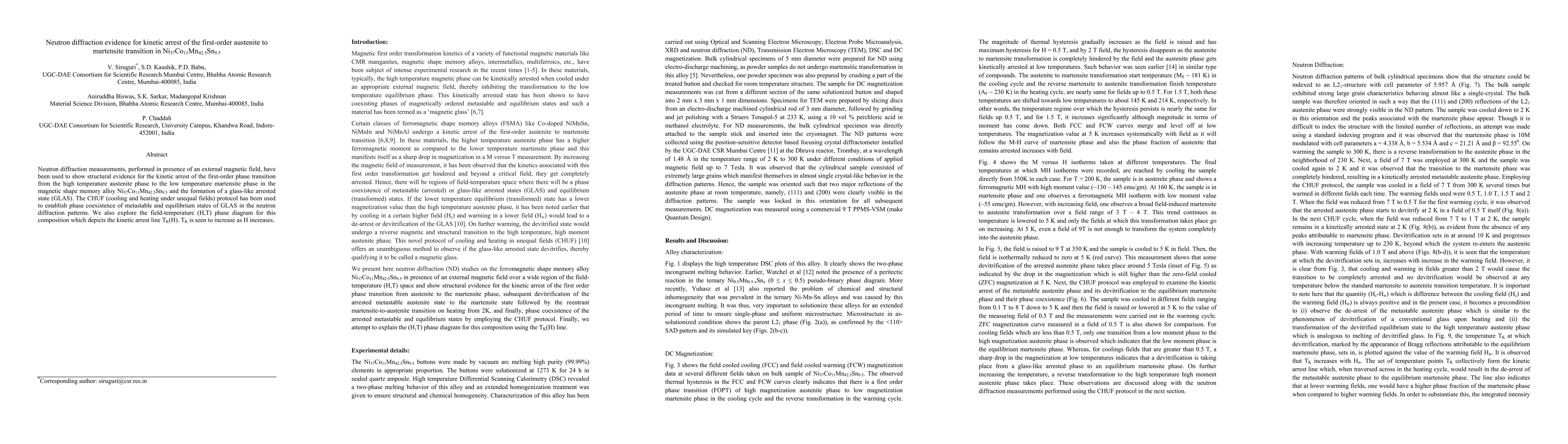 Researchers used neutron diffraction to study a magnetic shape memory alloy and found that applying an external magnetic field can 'arrest' the transition from austenite to martensite, creating a metastable state.