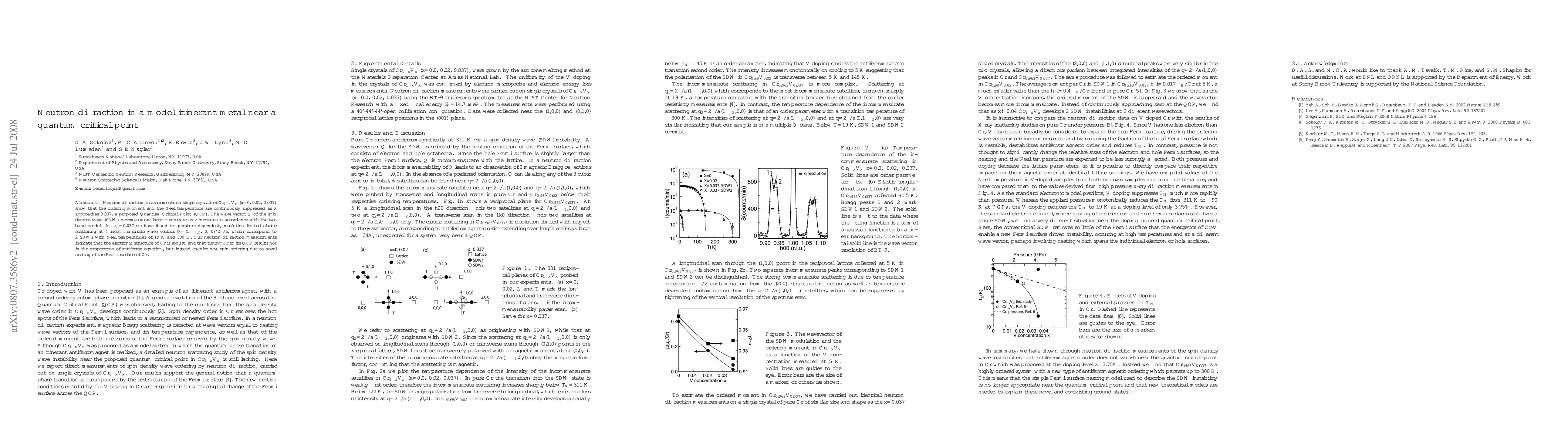 Neutron diffraction measurements on single crystals of Cr1-xVx (x=0, 0.02, 0.037) show that the ordering moment and the Neel temperature are continuously suppressed as x approaches 0.037, a proposed Quantum Critical Point (QCP). The wave vector Q of the spin density wave (SDW) becomes more incommensurate as x increases in accordance with the two band model. At xc=0.037 we have found temperature dependent, resolution limited elastic scattering at 4 incommensurate wave vectors Q=(1+/-delta_1,2, 0, 0)*2pi/a, which correspond to 2 SDWs with Neel temperatures of 19 K and 300 K. Our neutron diffraction measurements indicate that the electronic structure of Cr is robust, and that tuning Cr to its QCP results not in the suppression of antiferromagnetism, but instead enables new spin ordering due to novel nesting of the Fermi surface of Cr.