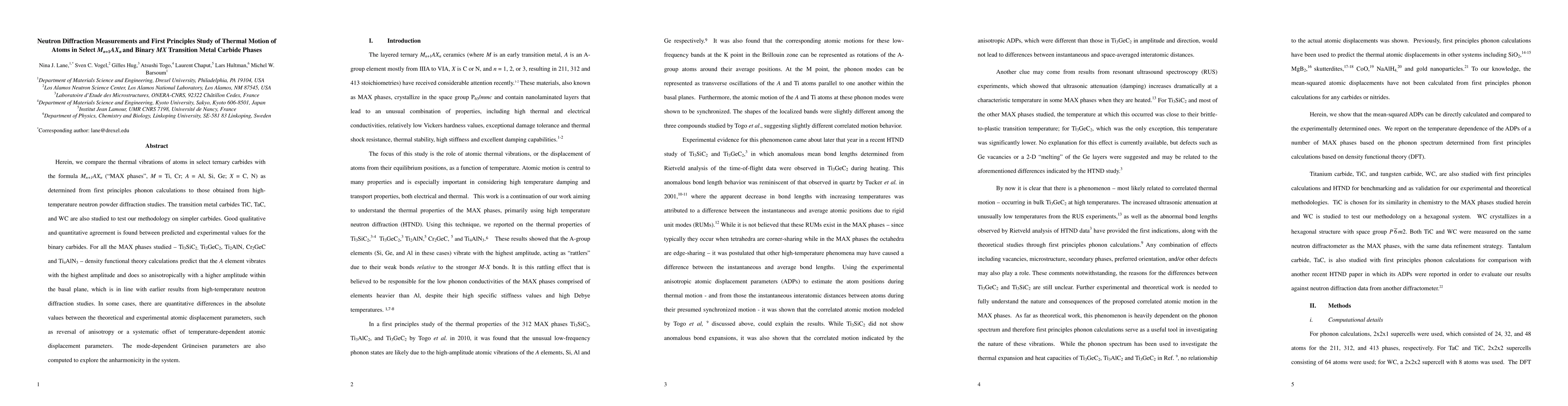 Researchers used neutron diffraction and first principles calculations to study thermal motion in transition metal carbides, finding good agreement between predicted and experimental values for atomic vibrations.