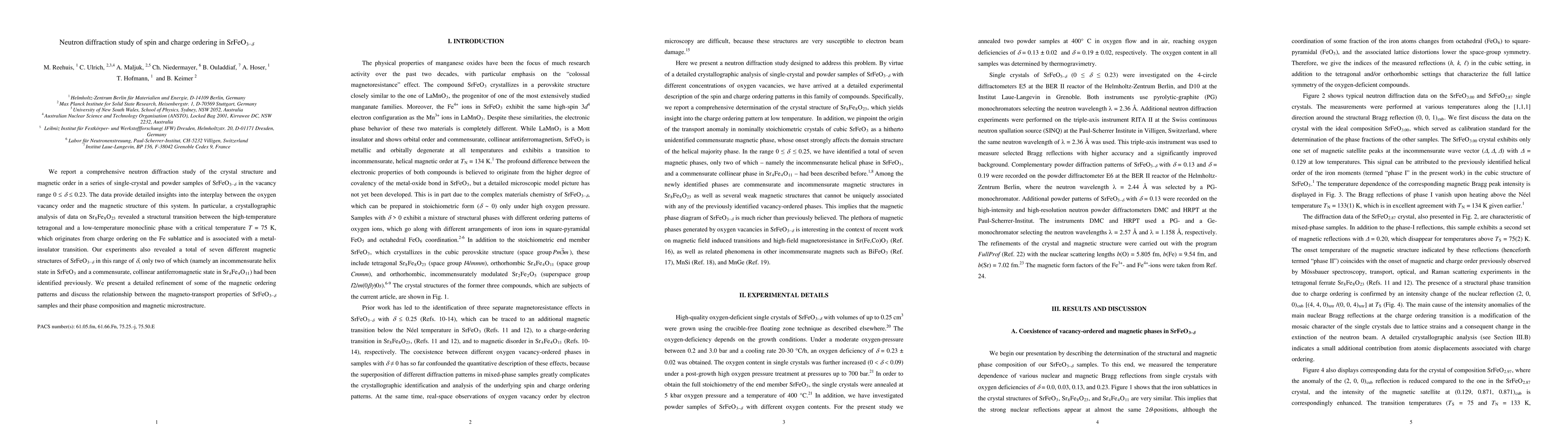 This study uses neutron diffraction to investigate the crystal structure and magnetic order in SrFeO$_{3-\delta}$ with varying oxygen vacancy levels. The research reveals a structural transition and identifies seven distinct magnetic structures, including new ordering patterns, and discusses the impact on magneto-transport properties.